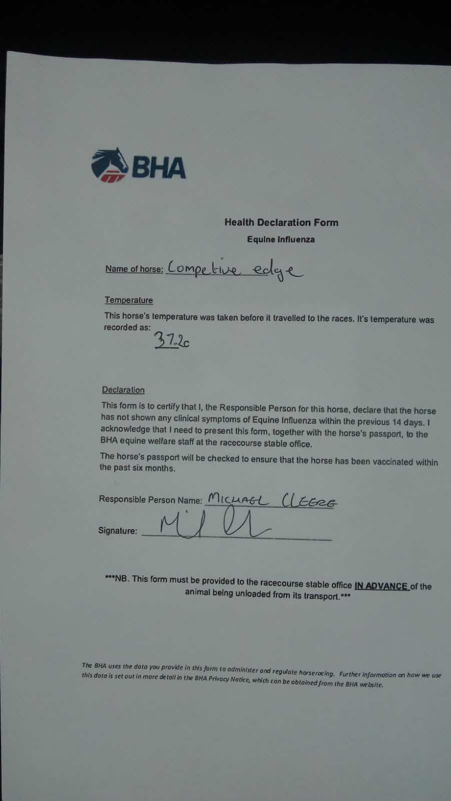BHA Health Declaration