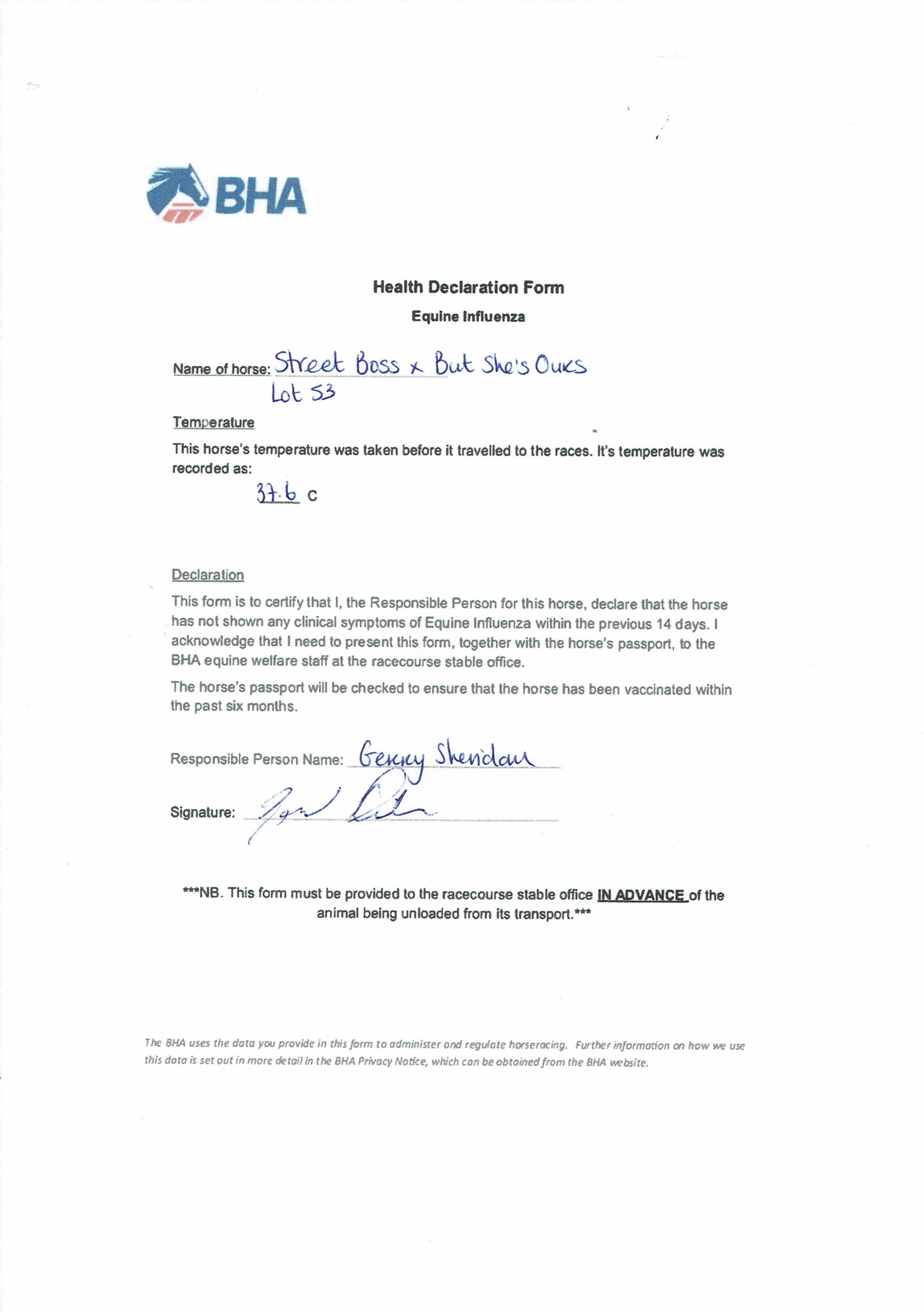 BHA Health Declaration