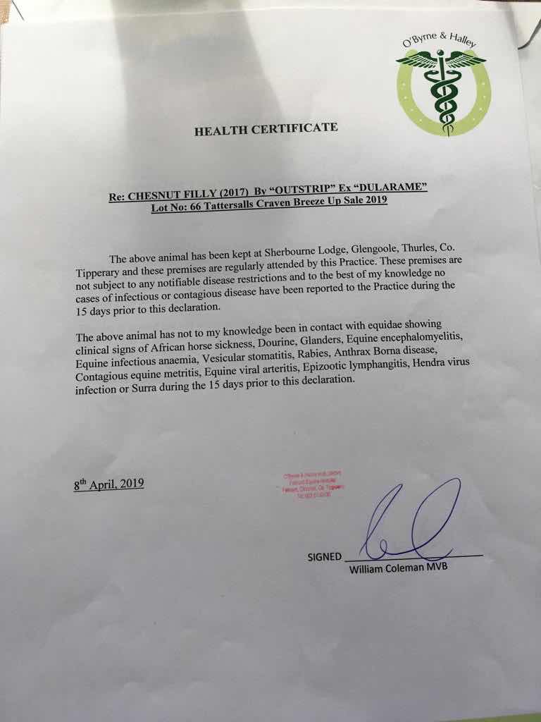 Consignor: Sherbourne Lodge, Ireland