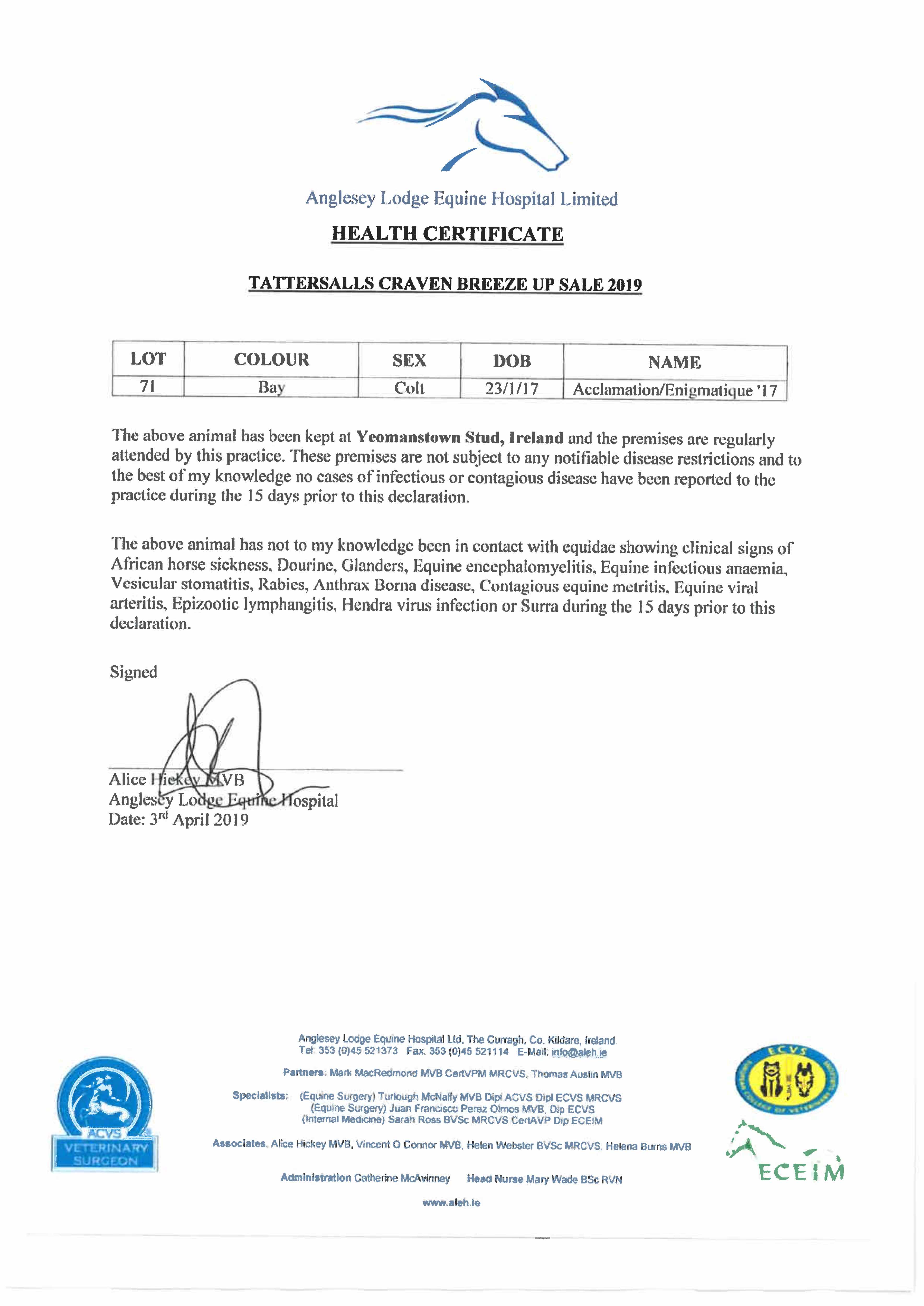 October Yearling Sale, Book 1 2018 lot 354, Yeomanstown Stud, Ireland=>Vendor 120,000 gns