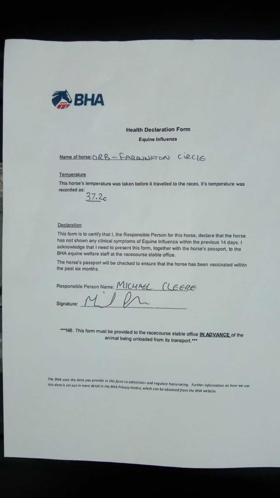 BHA Health Declaration