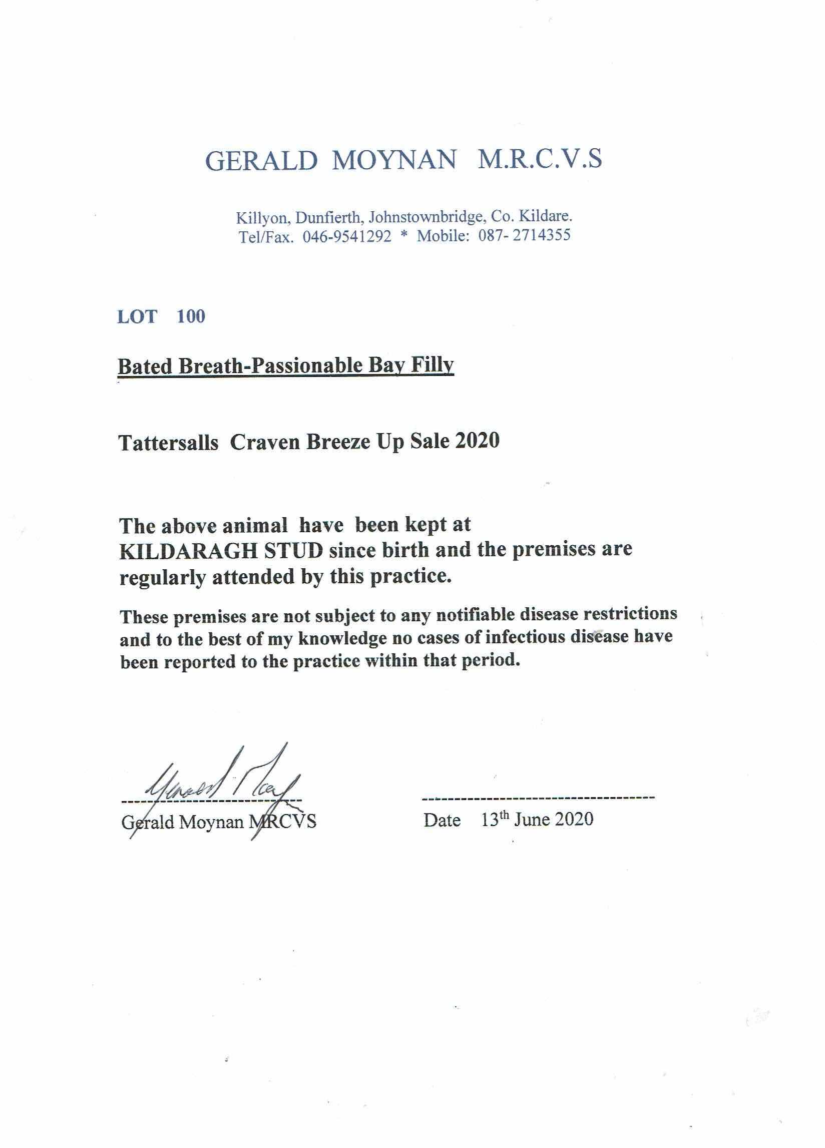 December Yearling Sale 2021 lot 80 F. by Aclaim (IRE) 2020, Kildaragh Stud, Ireland (Agent)=>Thomas O'Brien 4,500 gns