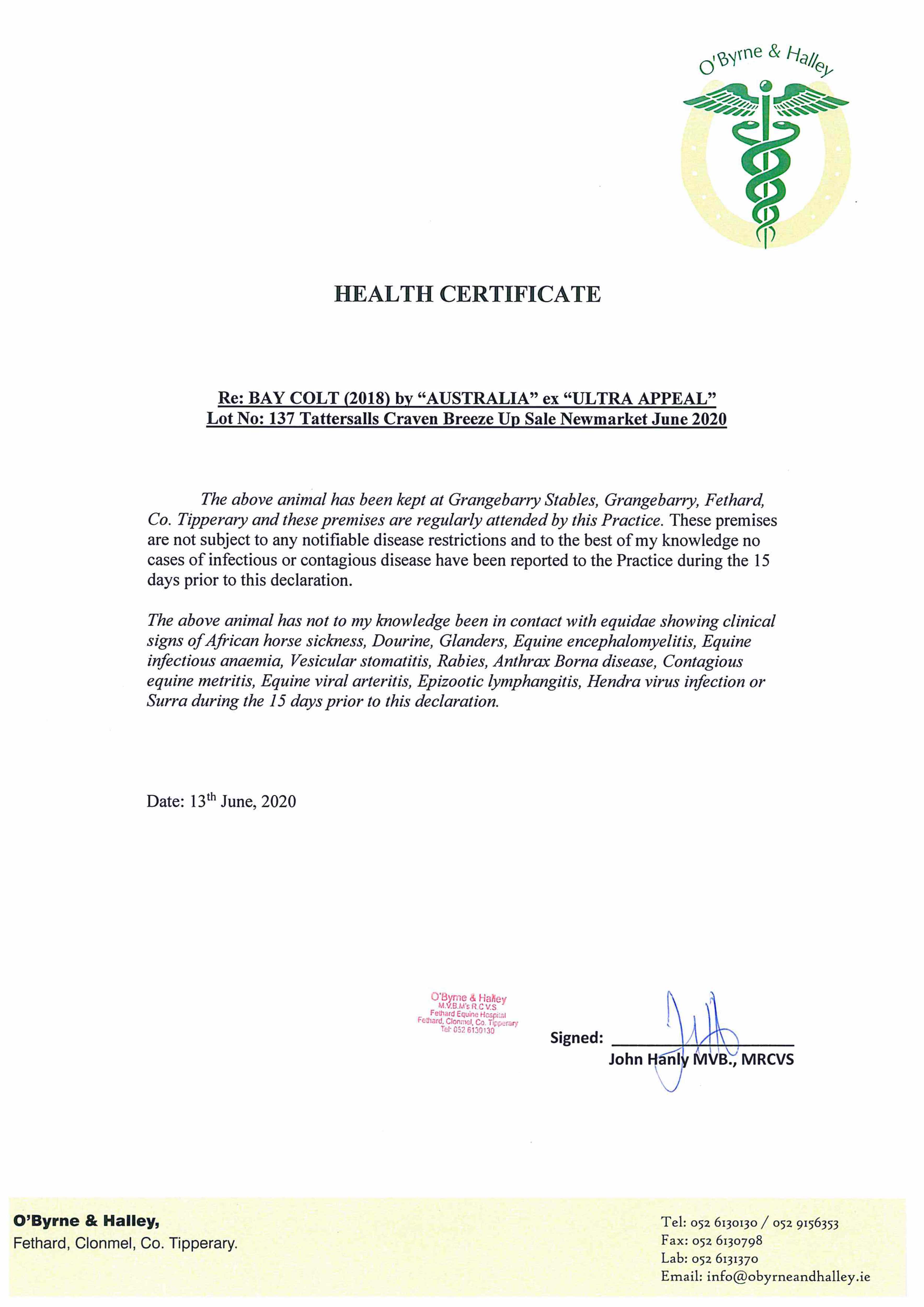 July Sale 2019 lot 238 Patrick Sarsfield (FR) (C.), The Castlebridge Consignment=>Joseph O'Brien 230,000 gns