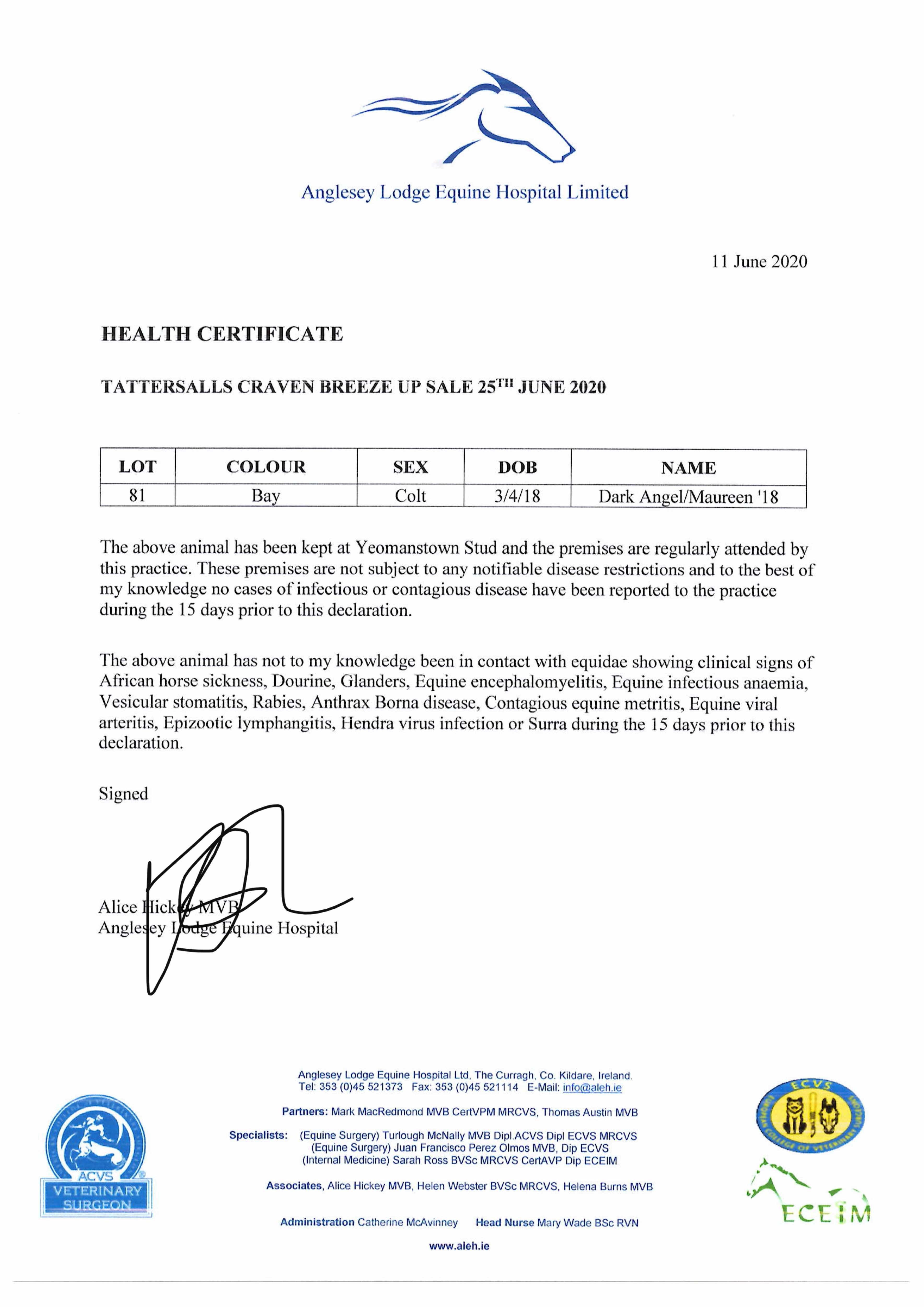 Consignor: Yeomanstown Stud, Ireland