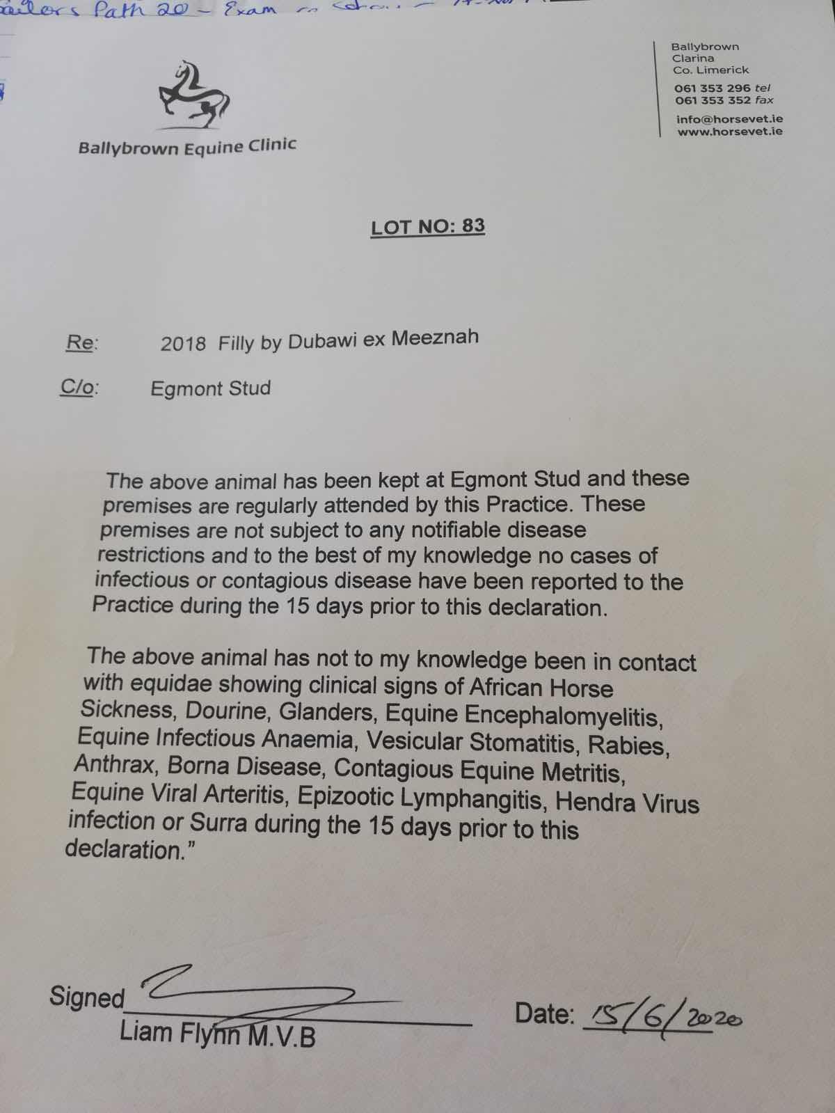 Consignor: Egmont Stud, Ireland