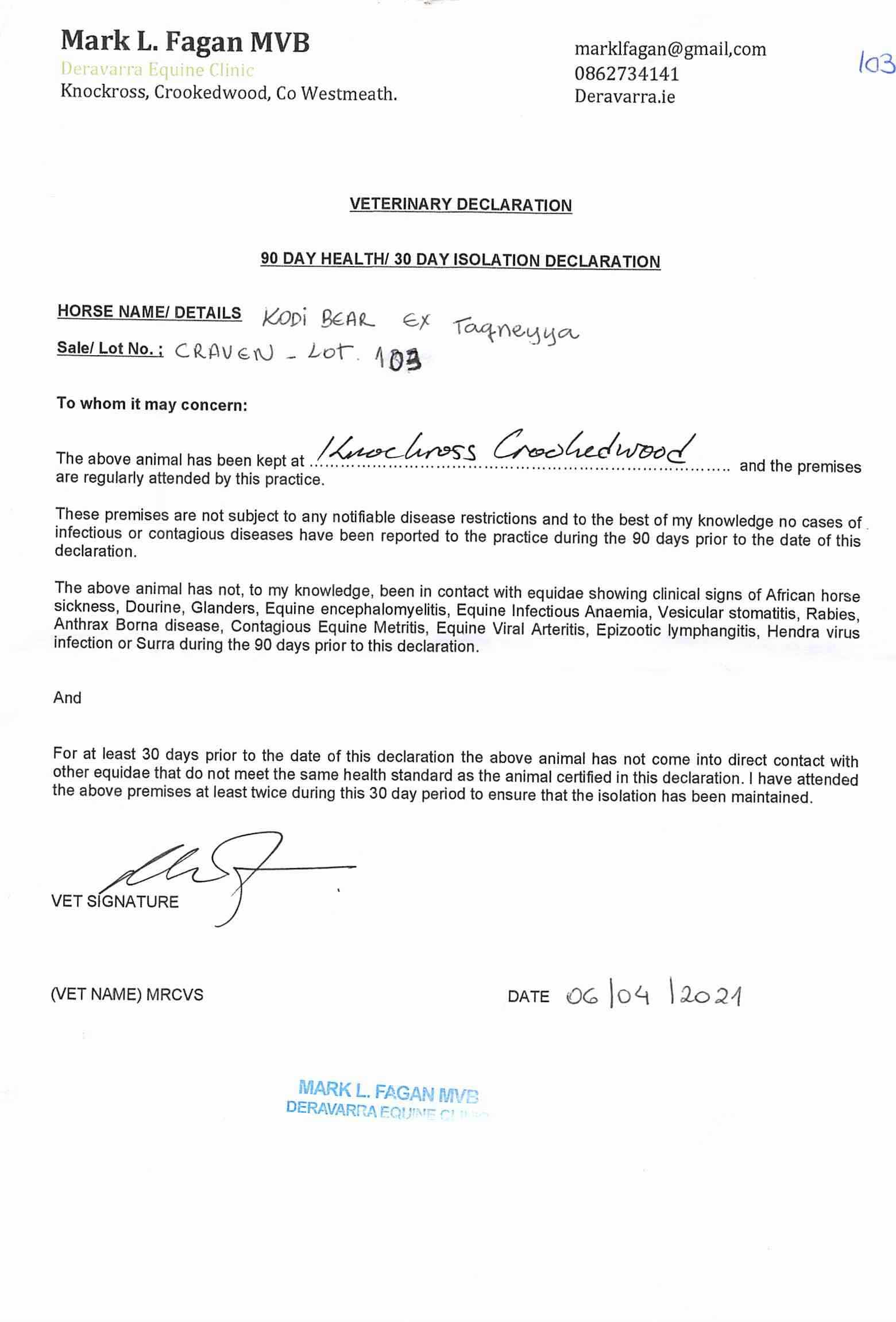 Consignor: Aguiar Bloodstock Ltd., Ireland