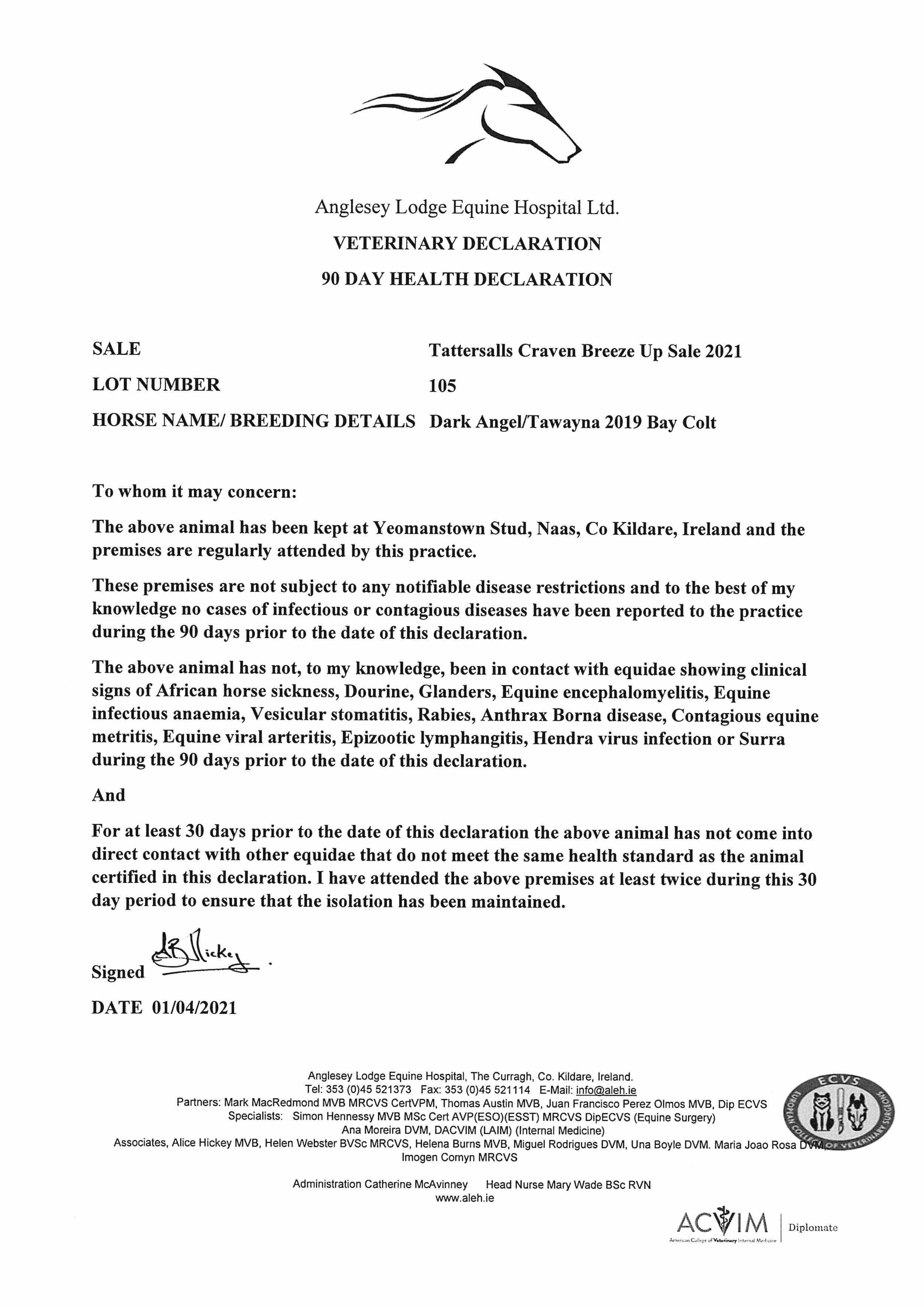 October Yearling Sale, Book 1 2020 lot 484, Yeomanstown Stud, Ireland=>Vendor75,000 gns