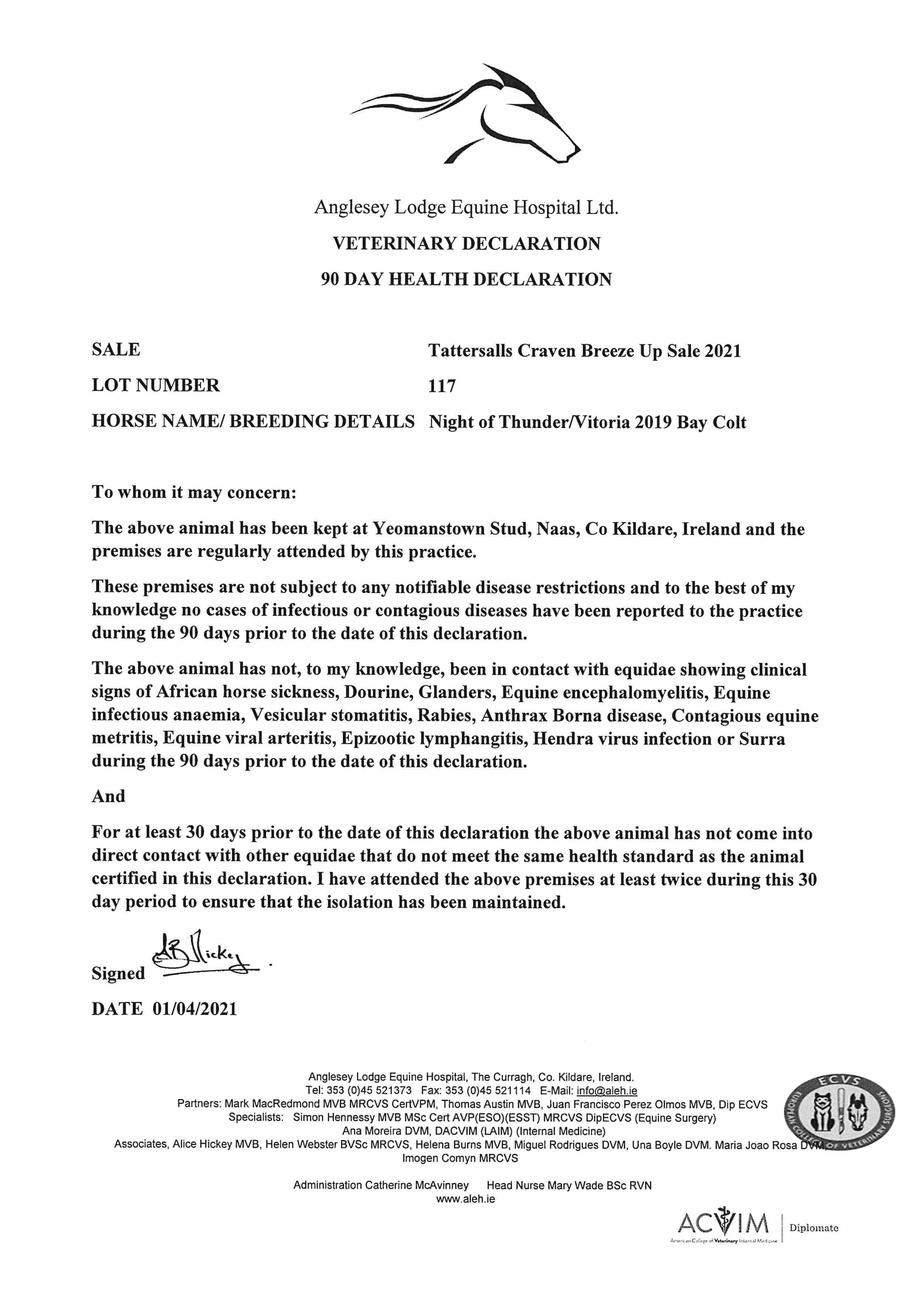Consignor: Yeomanstown Stud, Ireland