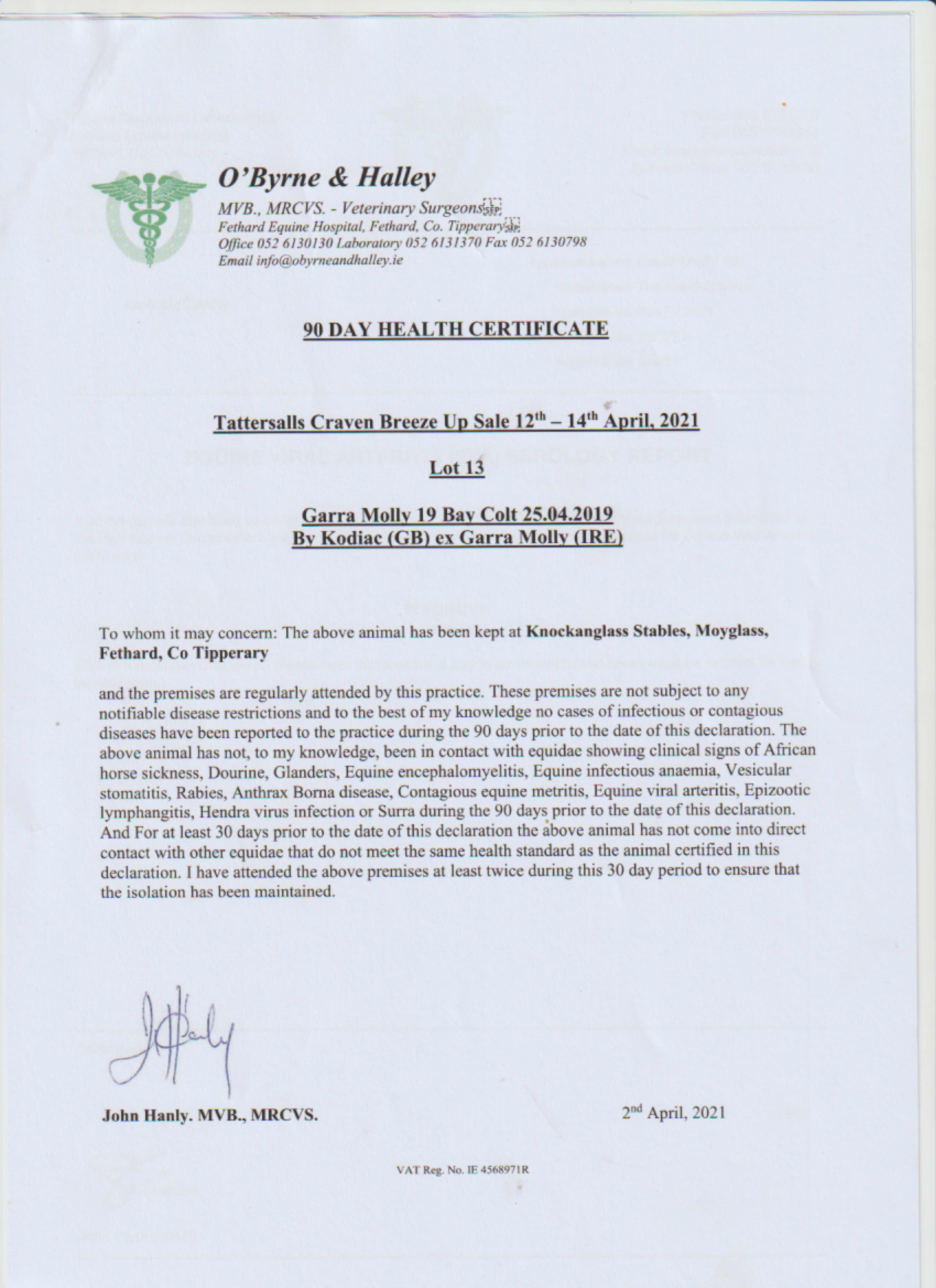 Tattersalls Ireland Goresbridge Breeze-Up 2019 lot 97 F. 2017, Gaybrook Lodge Stud=>Vendor €30,000