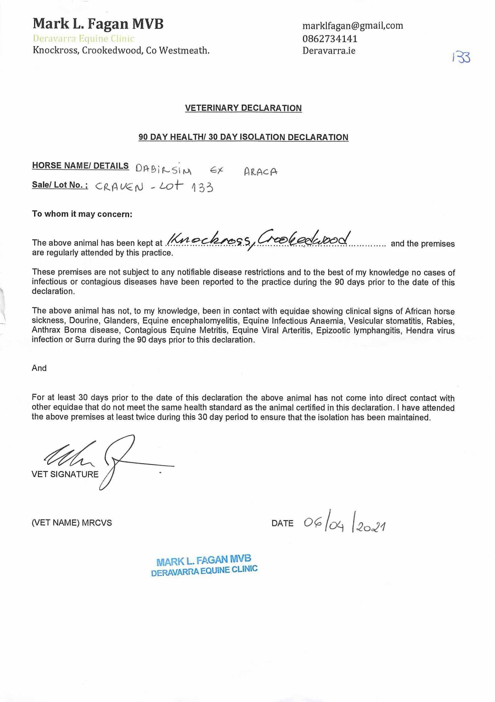 Consignor: Aguiar Bloodstock Ltd., Ireland