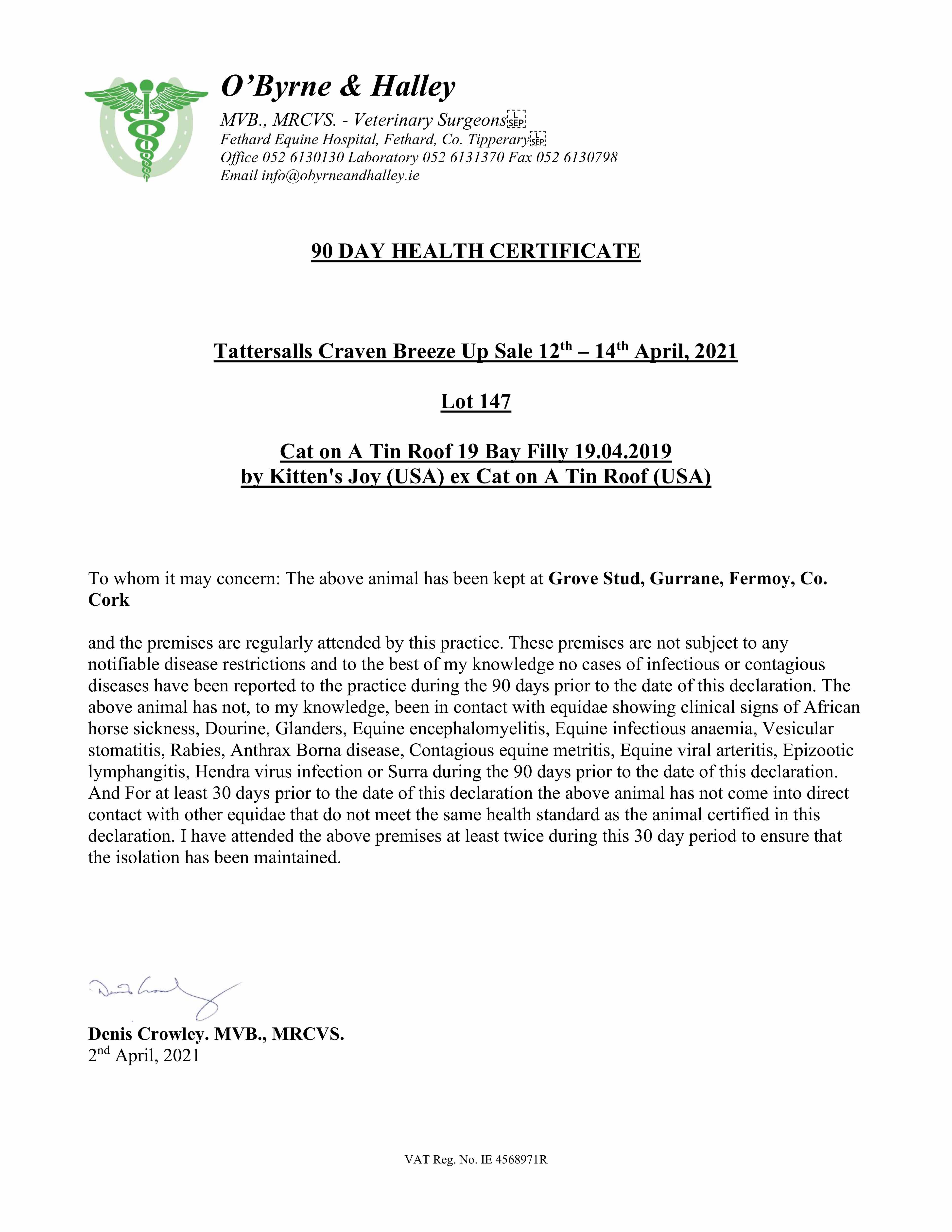 Consignor: Grove Stud, Ireland