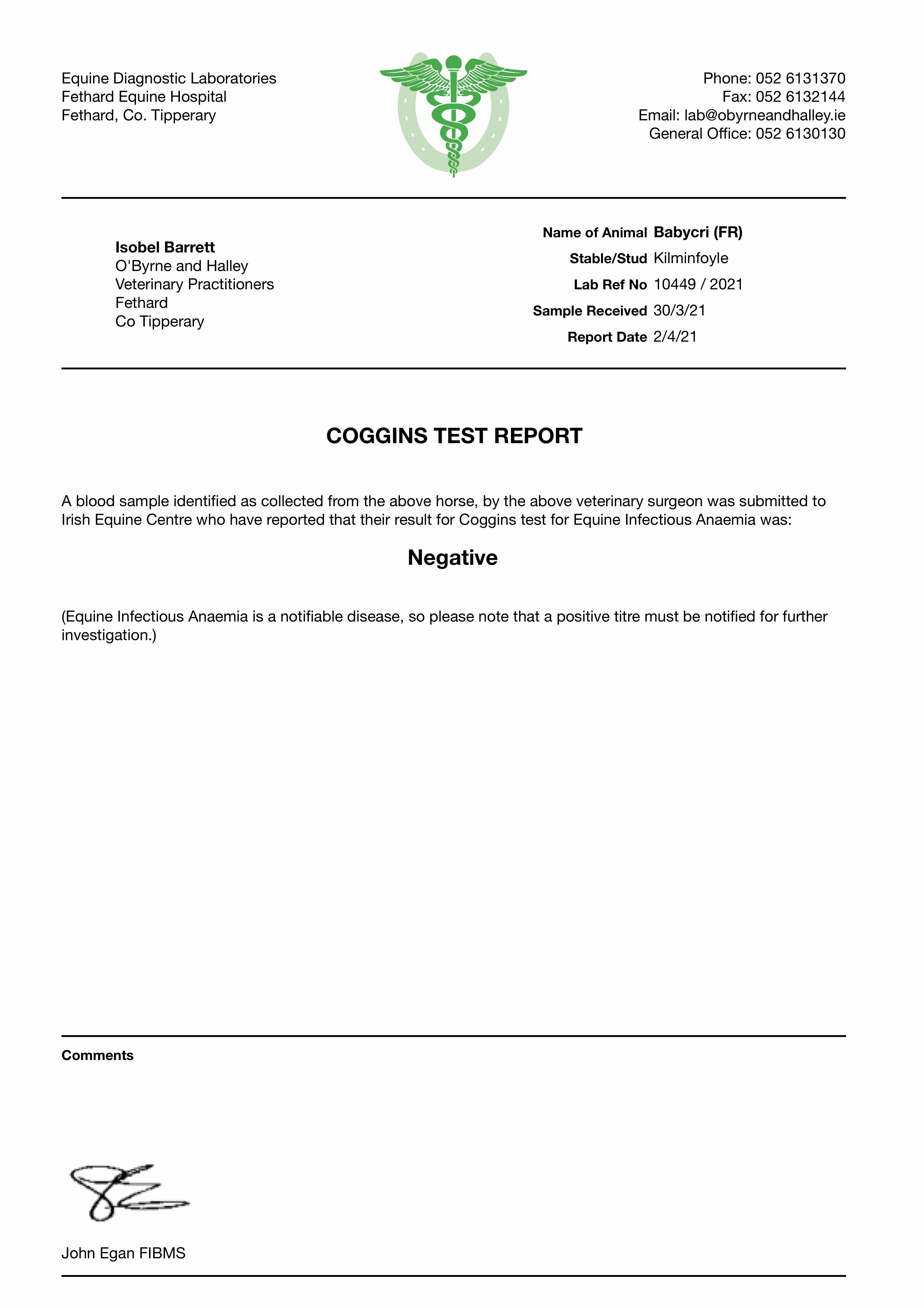 Kilminfoyle House Stud, Ireland (Agent)