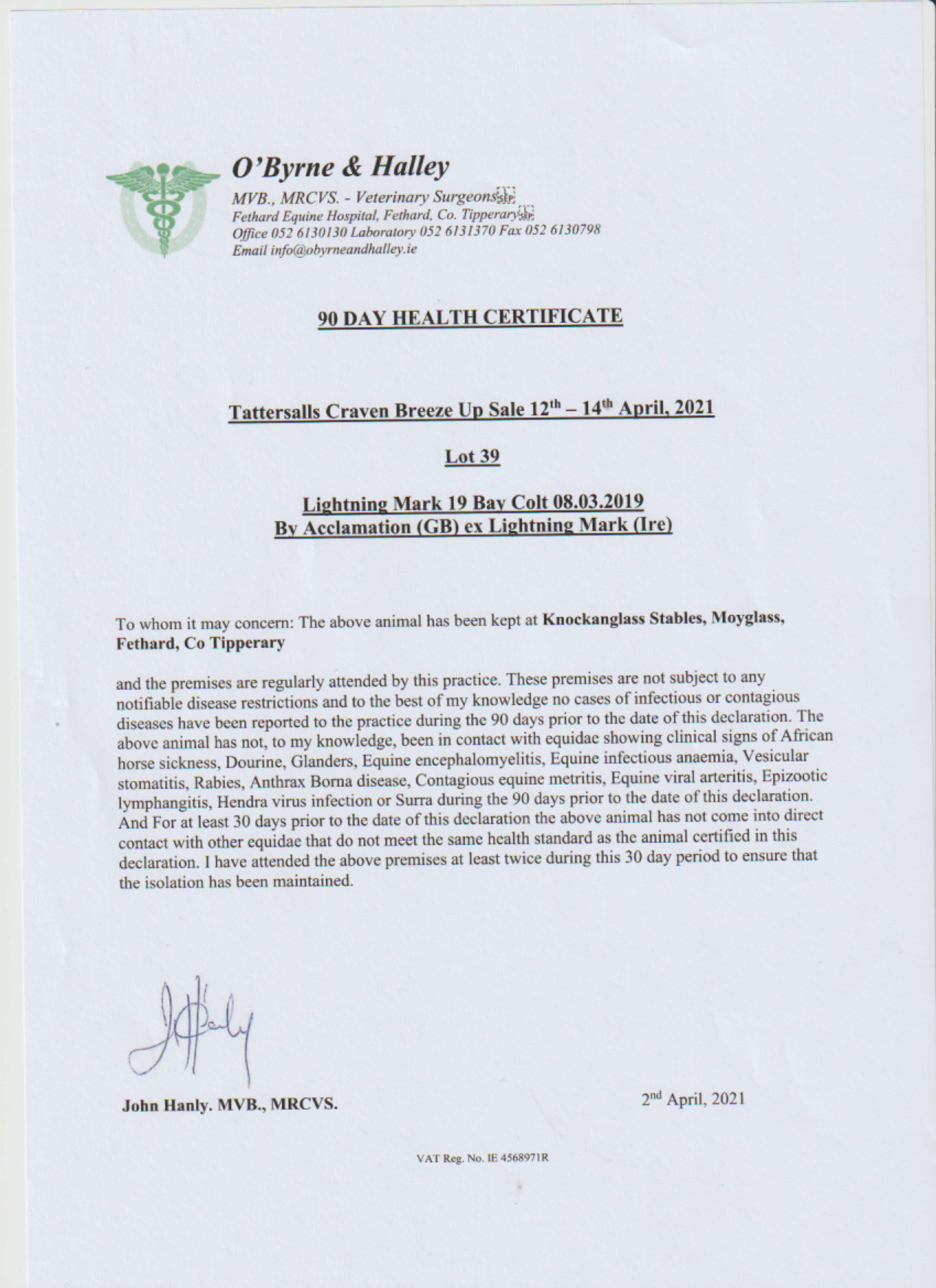 Consignor: Knockanglass Stables, Ireland