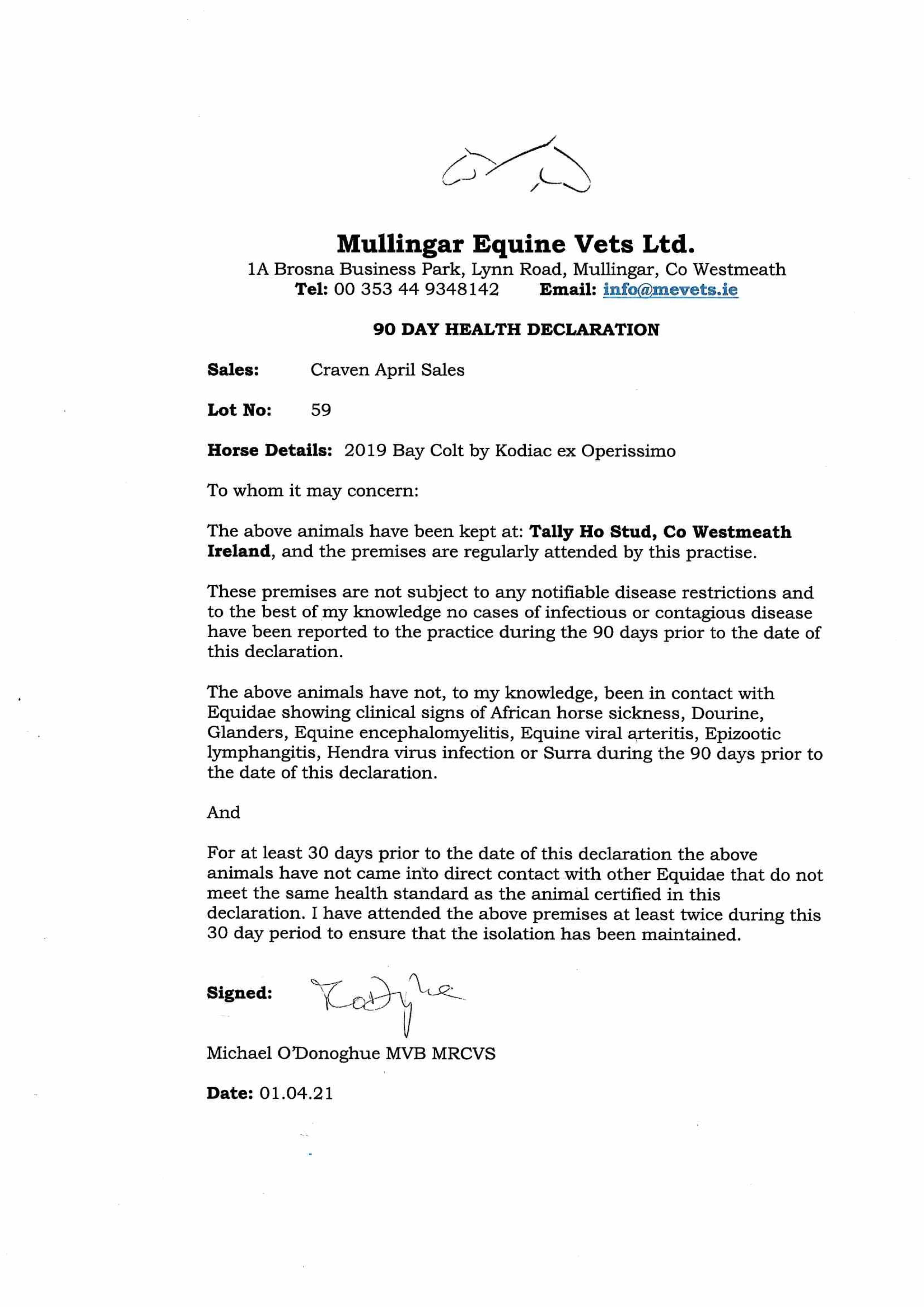 Consignor: Tally-Ho Stud, Ireland