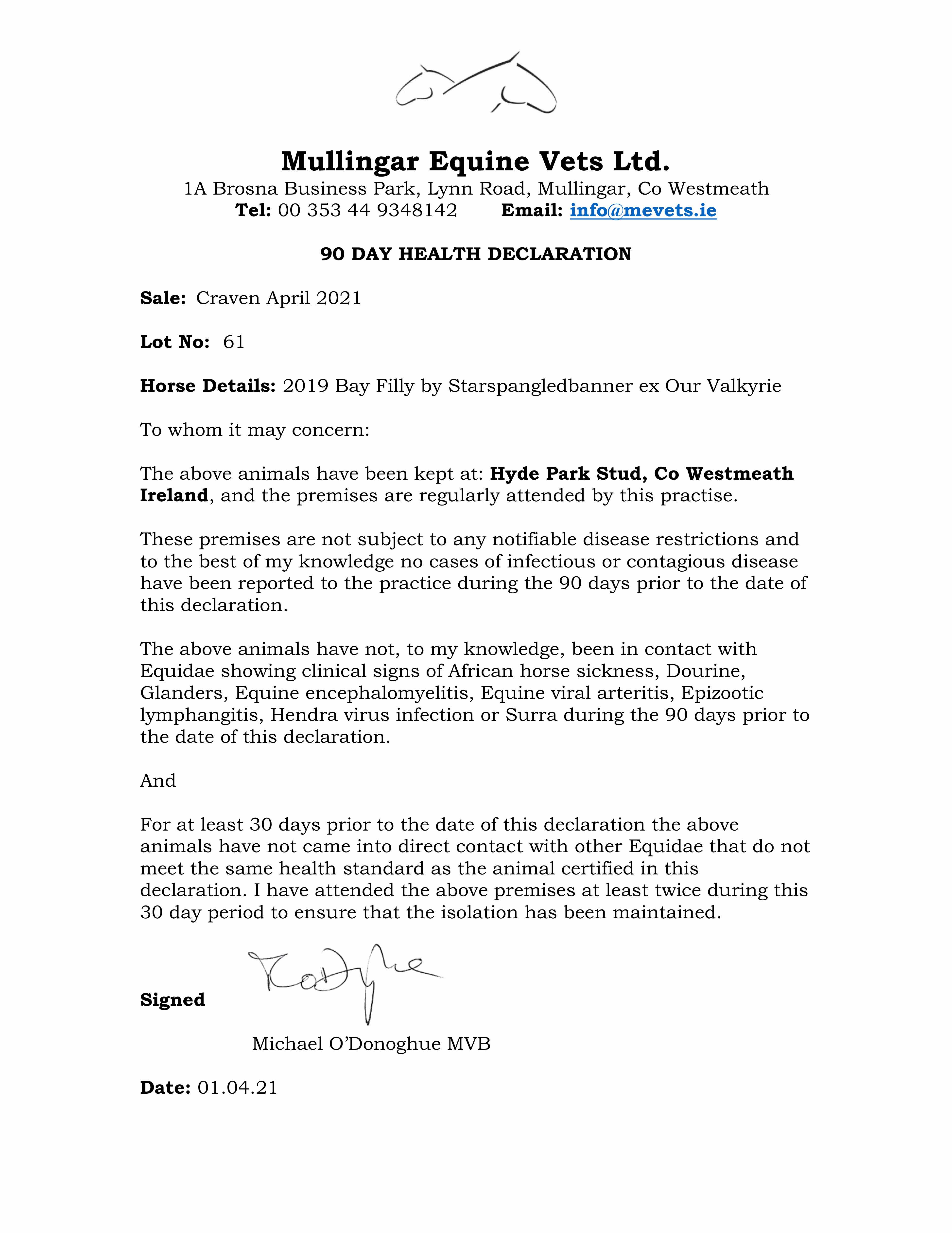 Consignor: Hyde Park Stud, Ireland