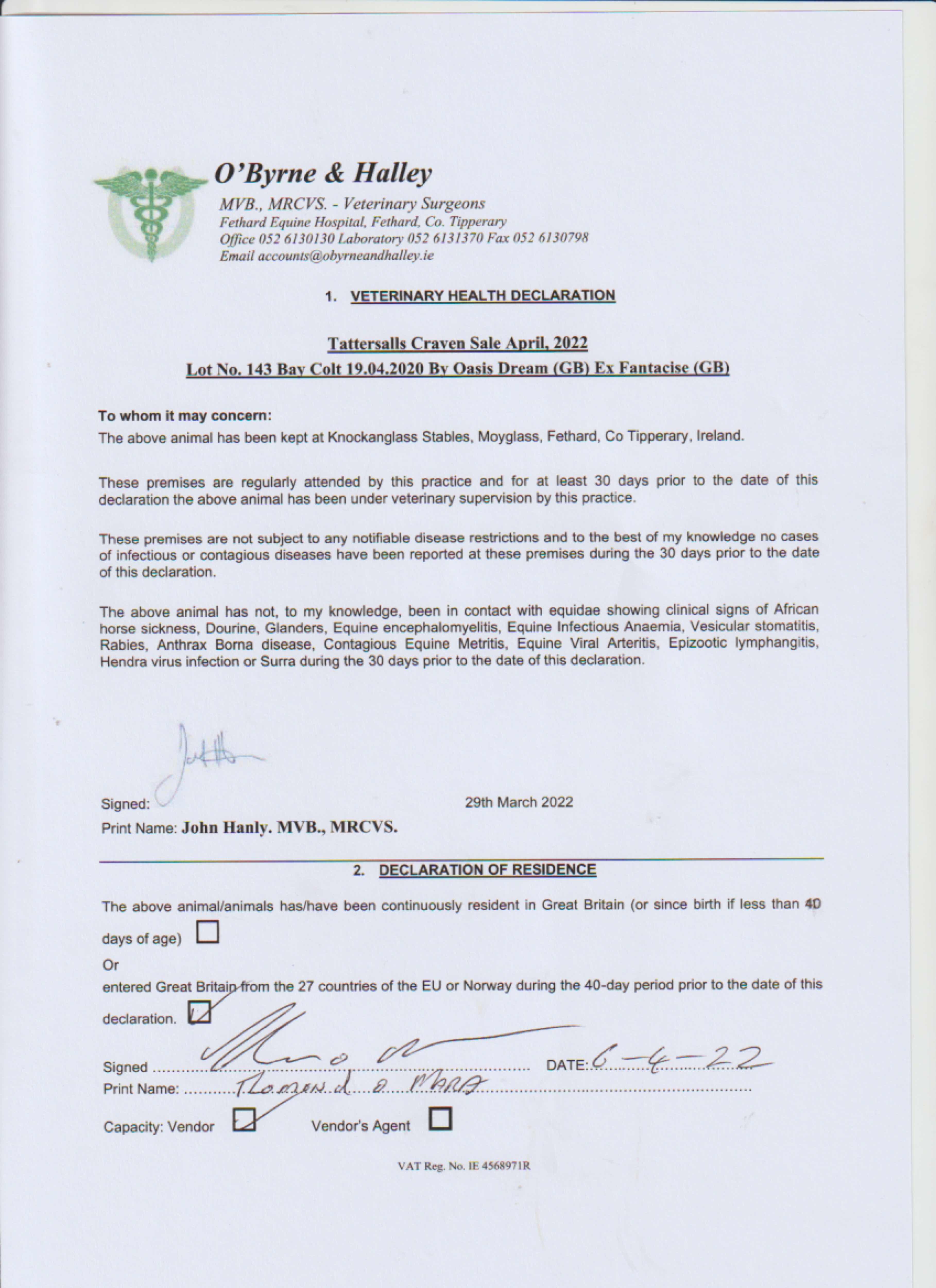 Consignor: Knockanglass Stables, Ireland