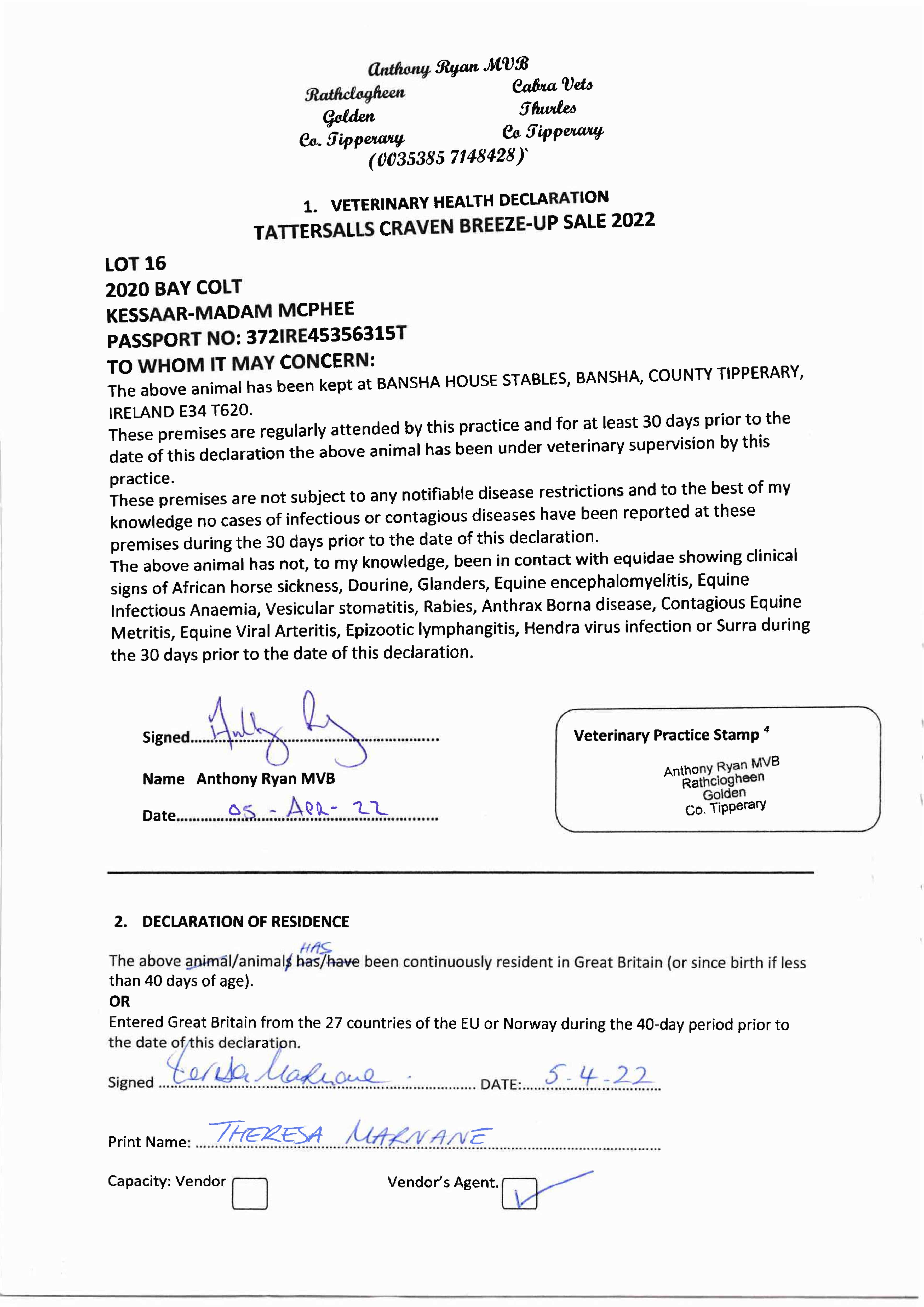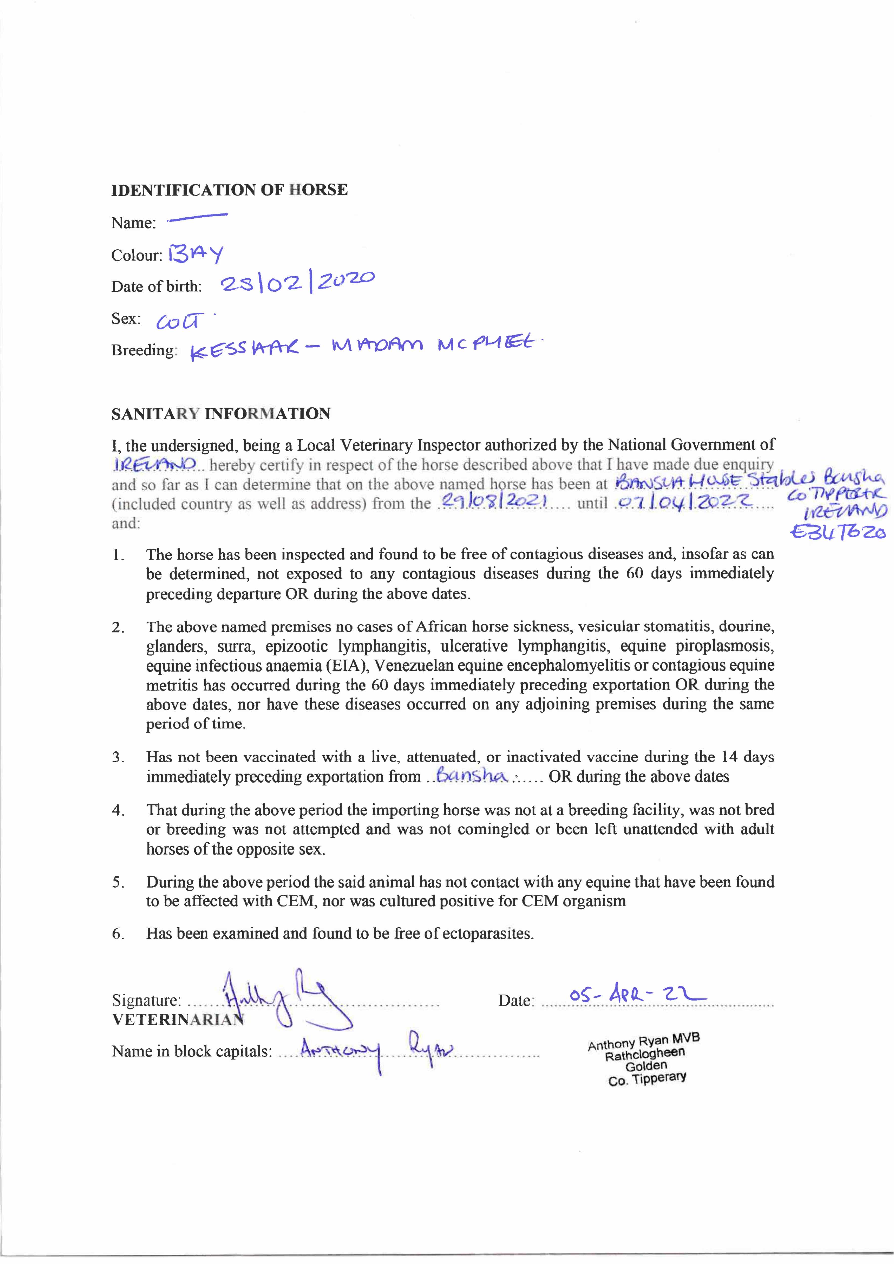 Consignor: Bansha House Stables, Ireland