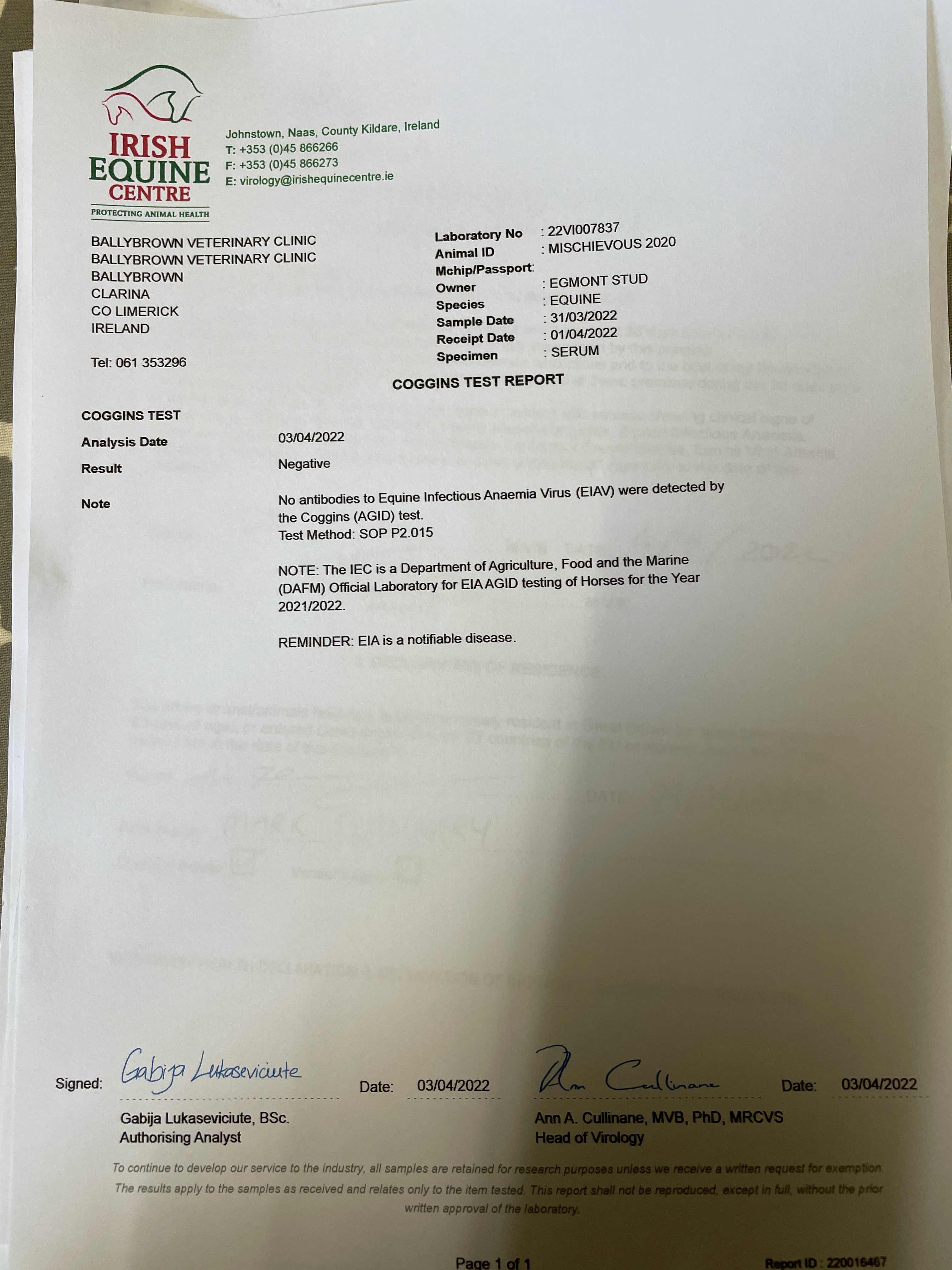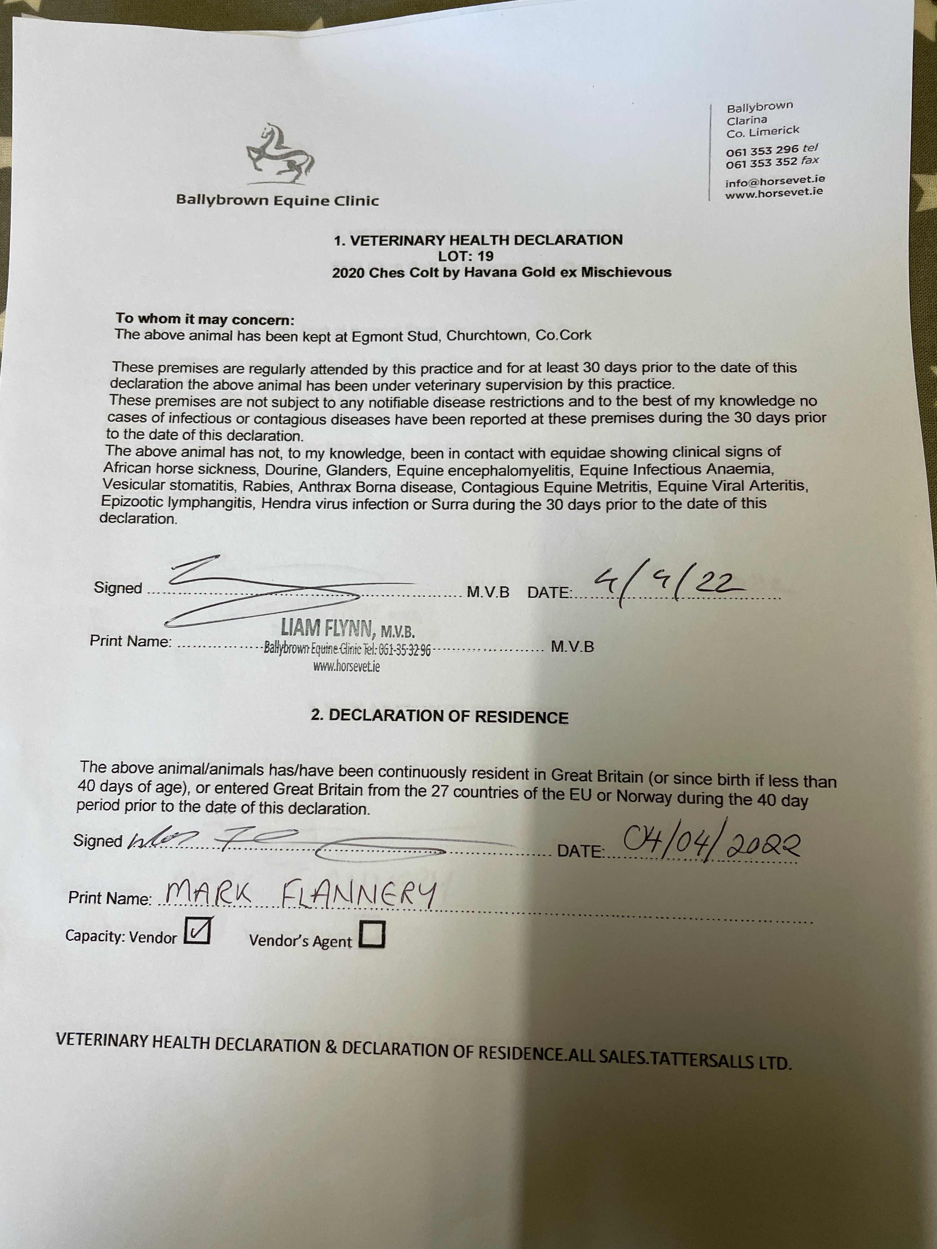 Consignor: Egmont Stud, Ireland