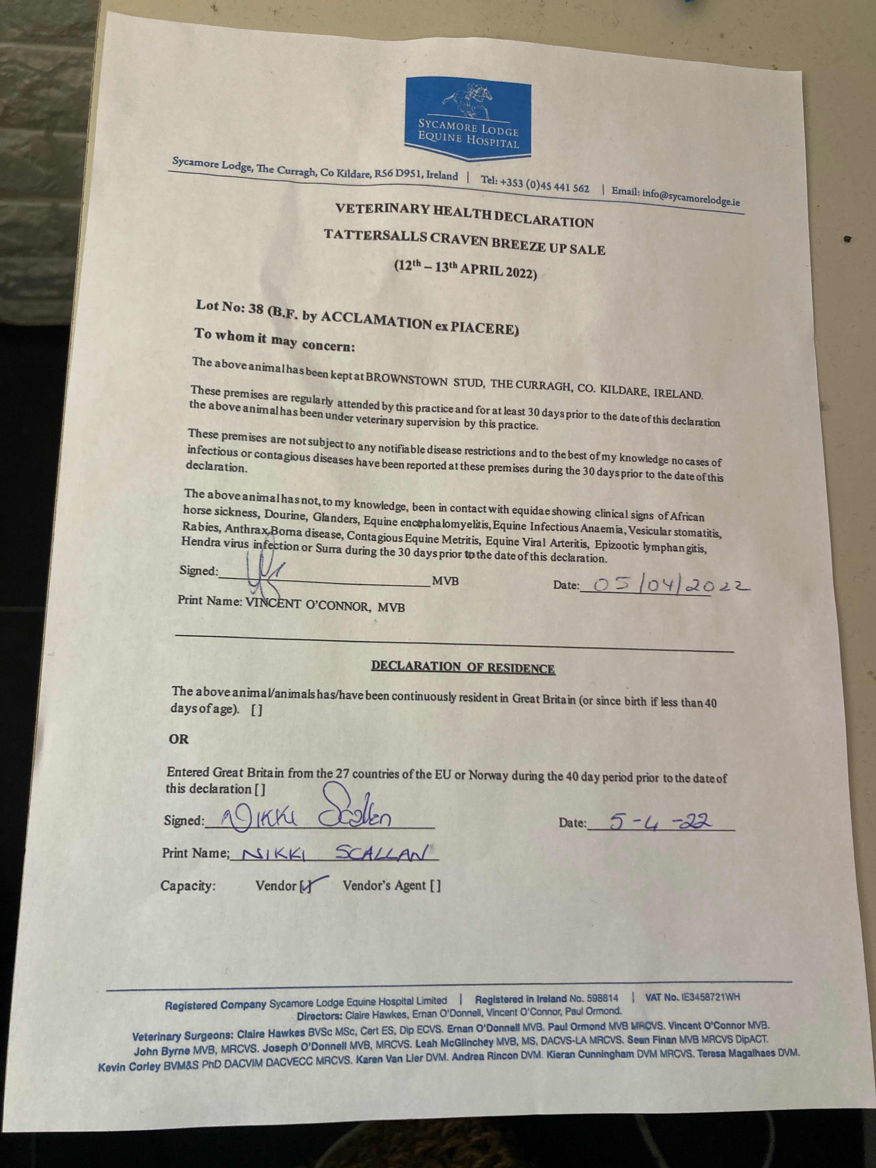 Consignor: A. & N. Bloodstock, Ireland