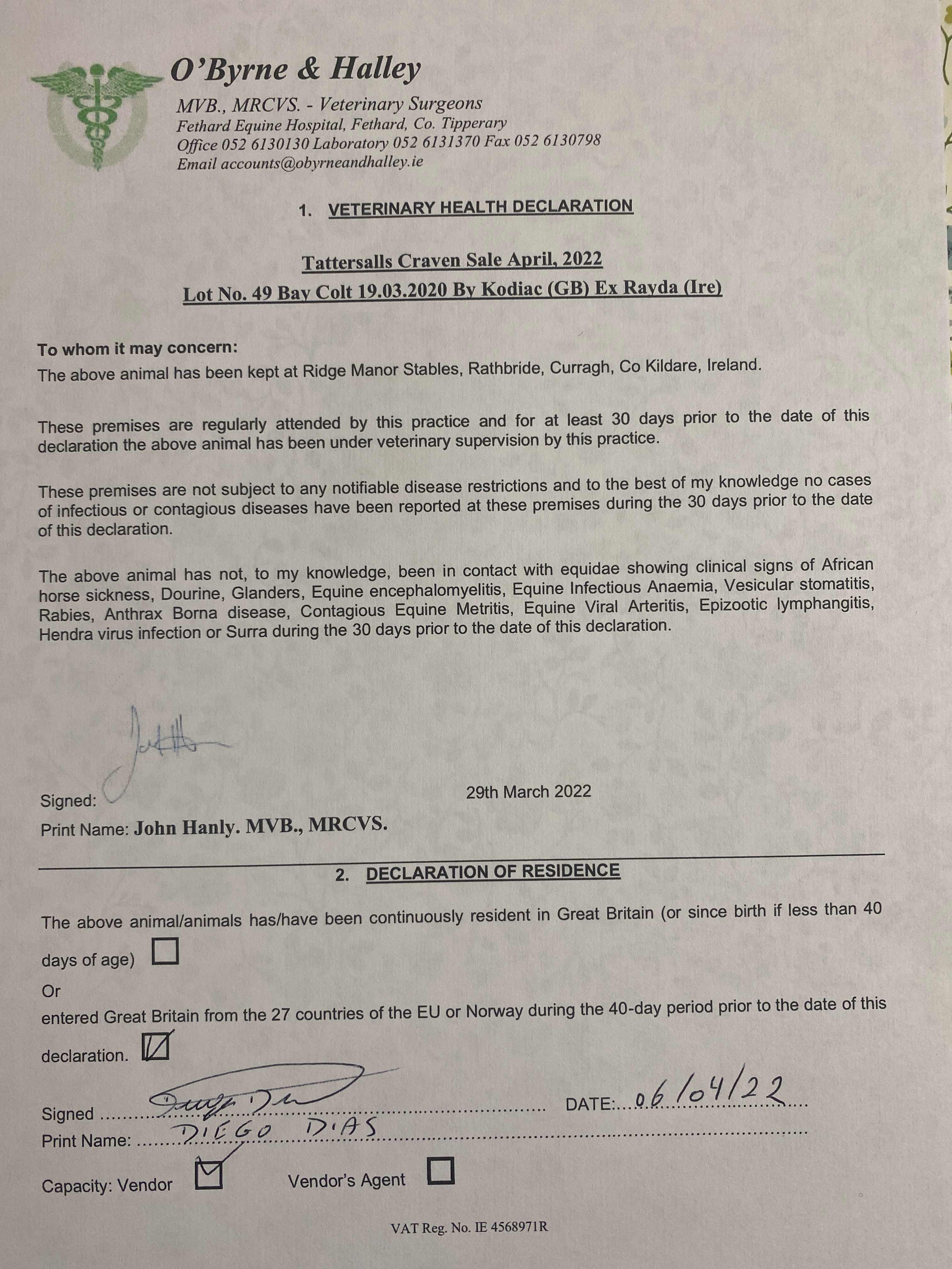 Craven Breeze Up Sale 2023 lot 28 F. 2021, Egmont Stud, Ireland=>Vendor 15,000 gns