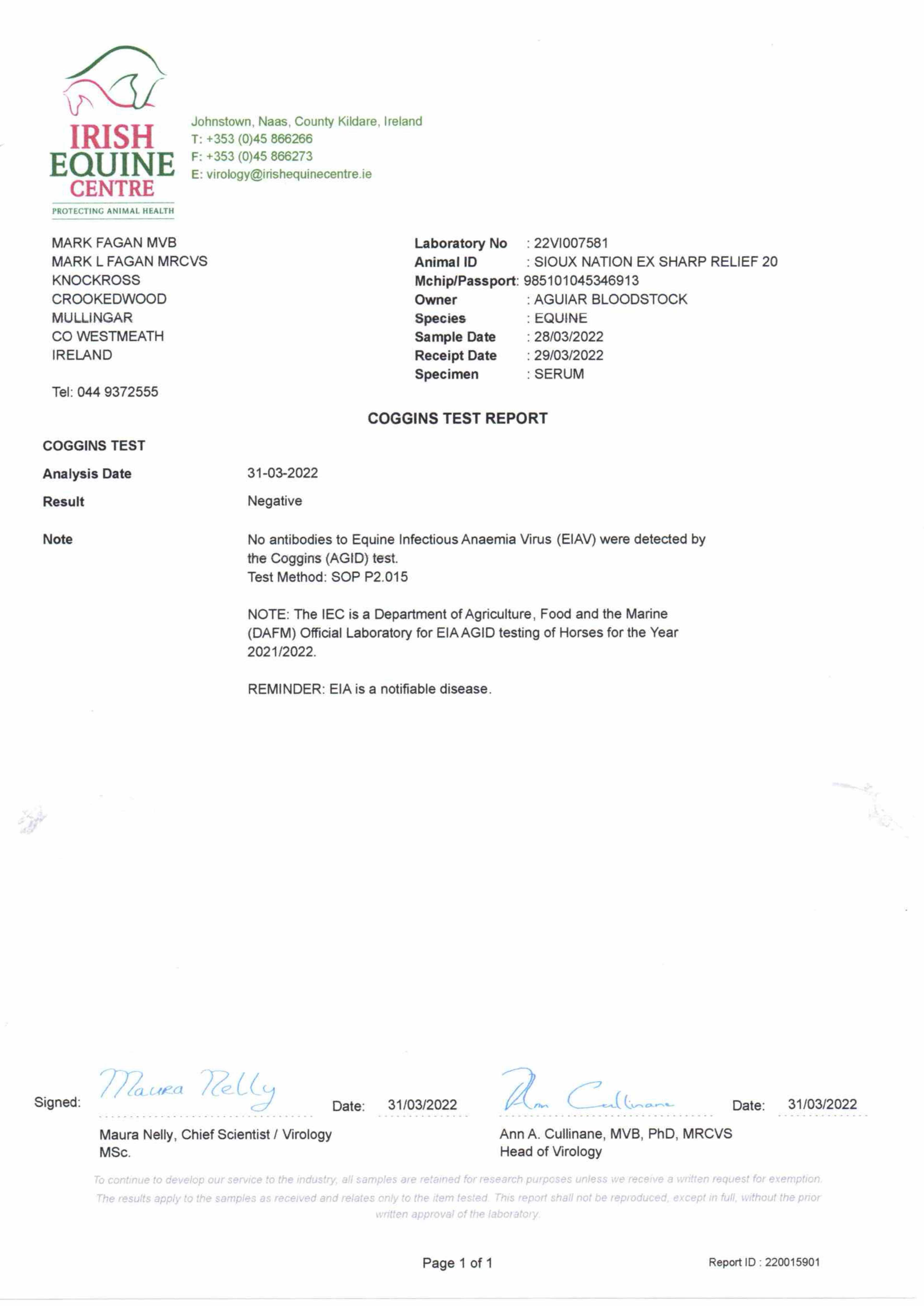 Consignor: Aguiar Bloodstock Ltd., Ireland