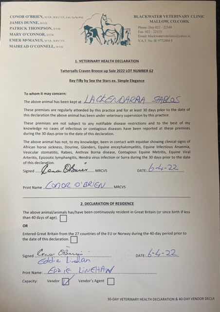 Consignor: Lackendarra Stables, Ireland