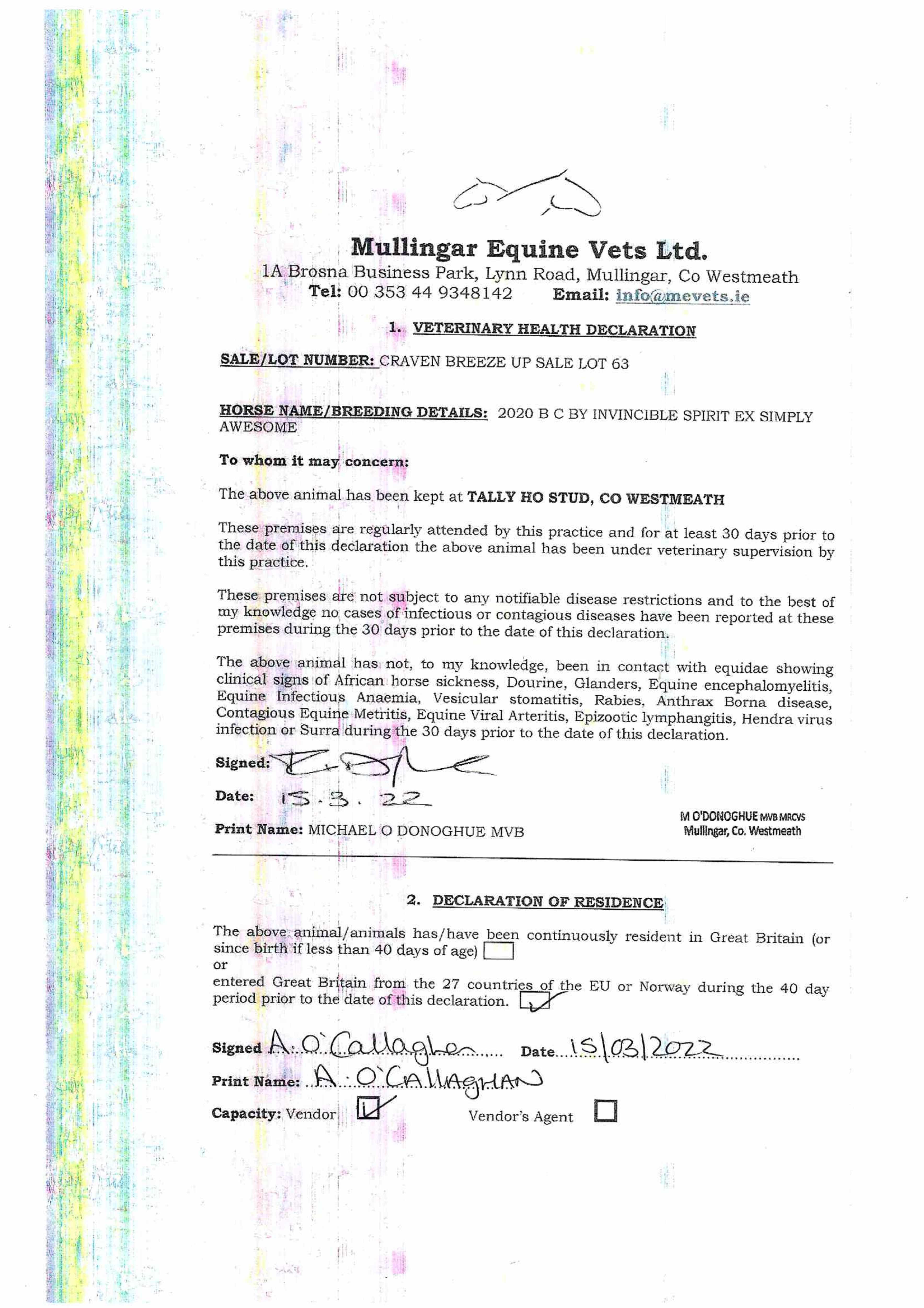 Consignor: Tally-Ho Stud, Ireland