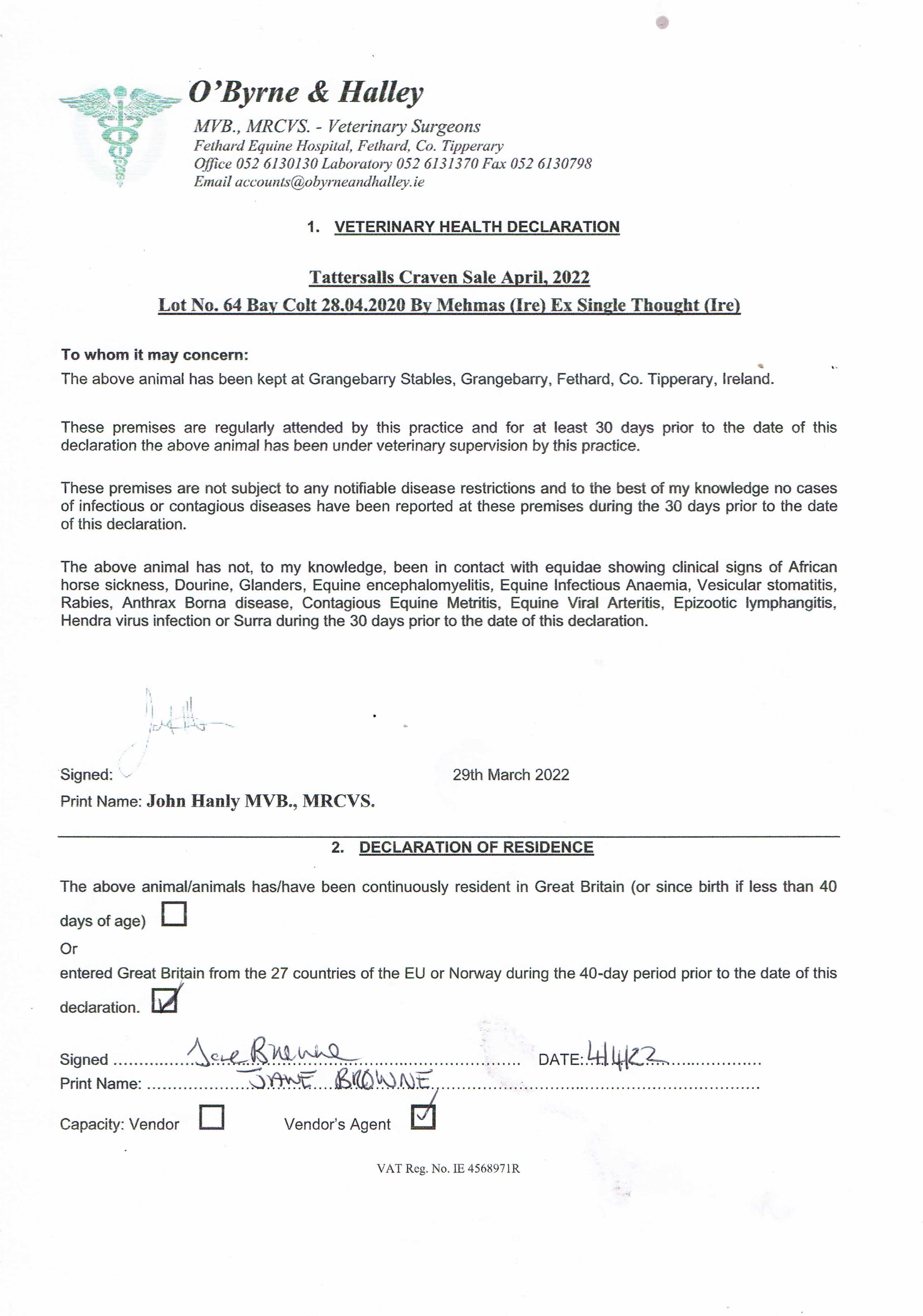 Consignor: Mocklershill, Ireland