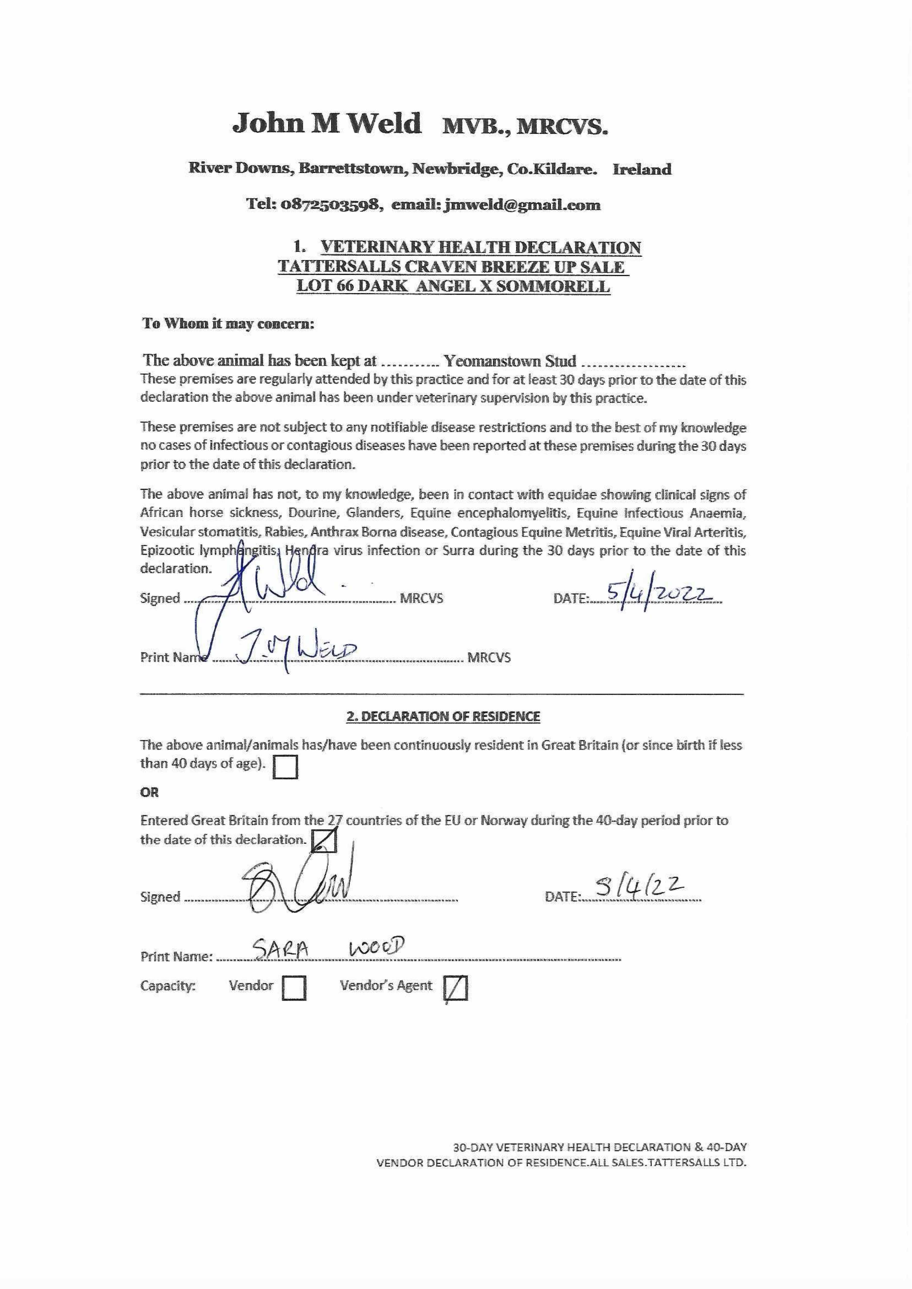 Consignor: Yeomanstown Stud, Ireland