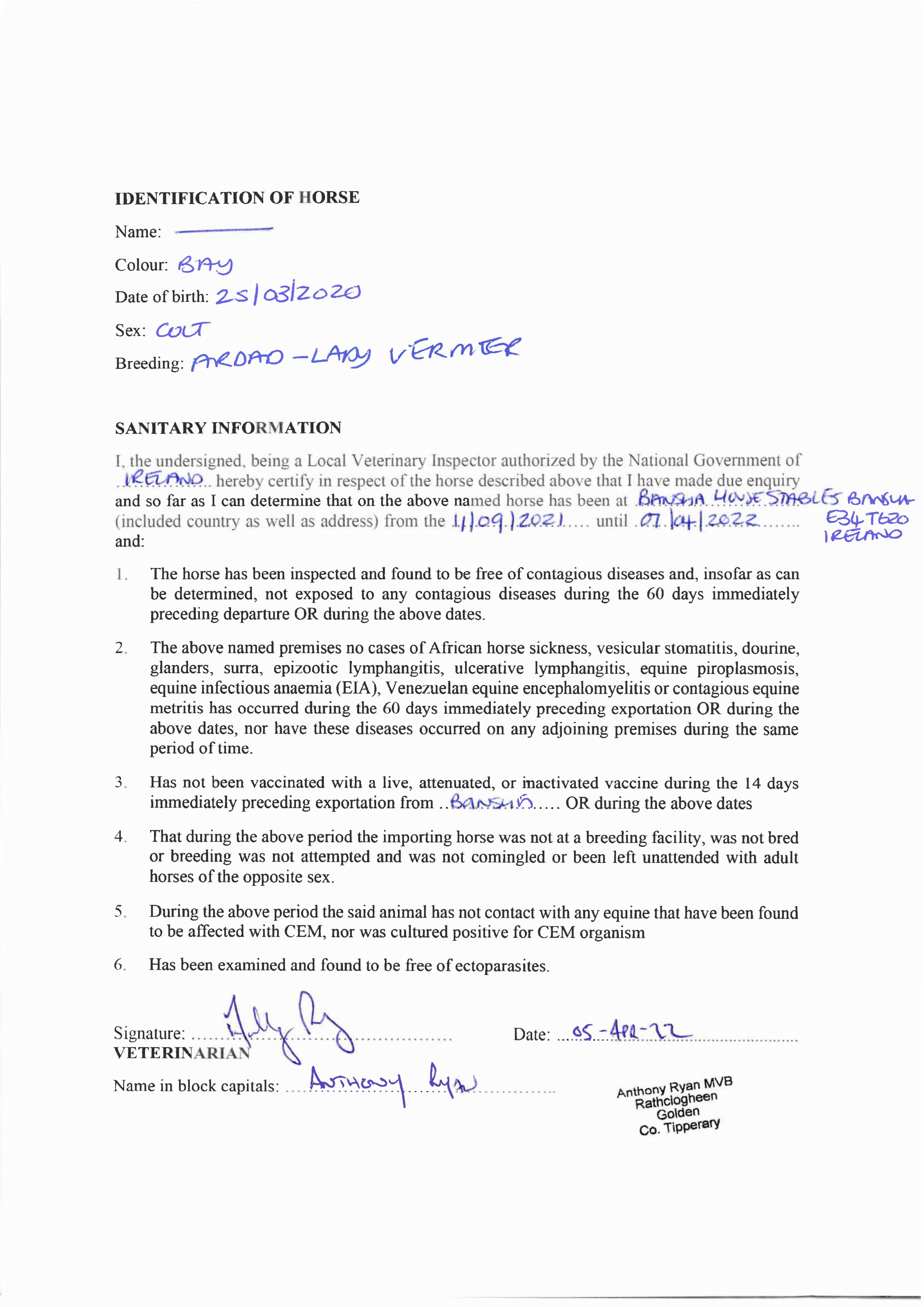 Consignor: Bansha House Stables, Ireland