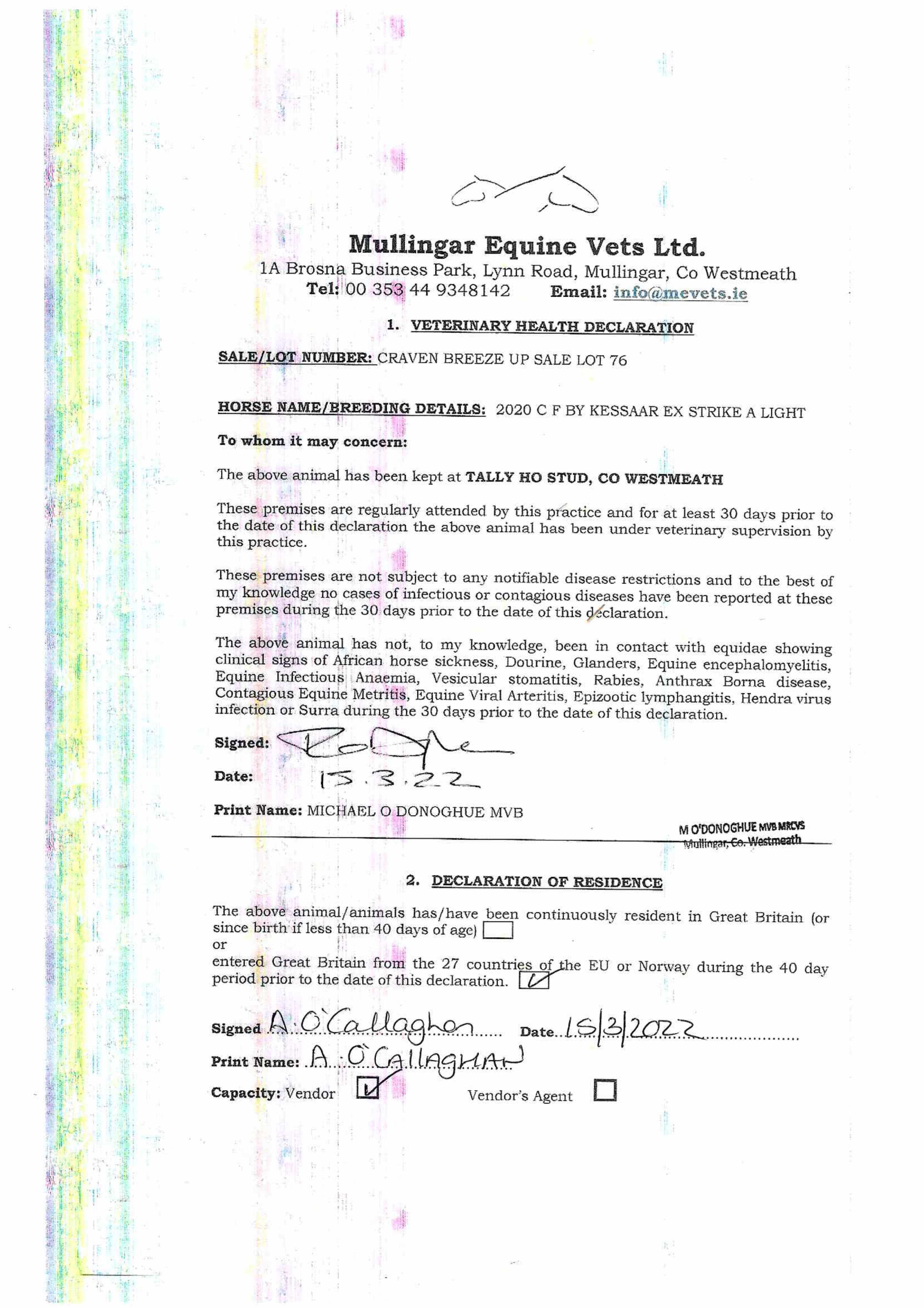 Consignor: Tally-Ho Stud, Ireland