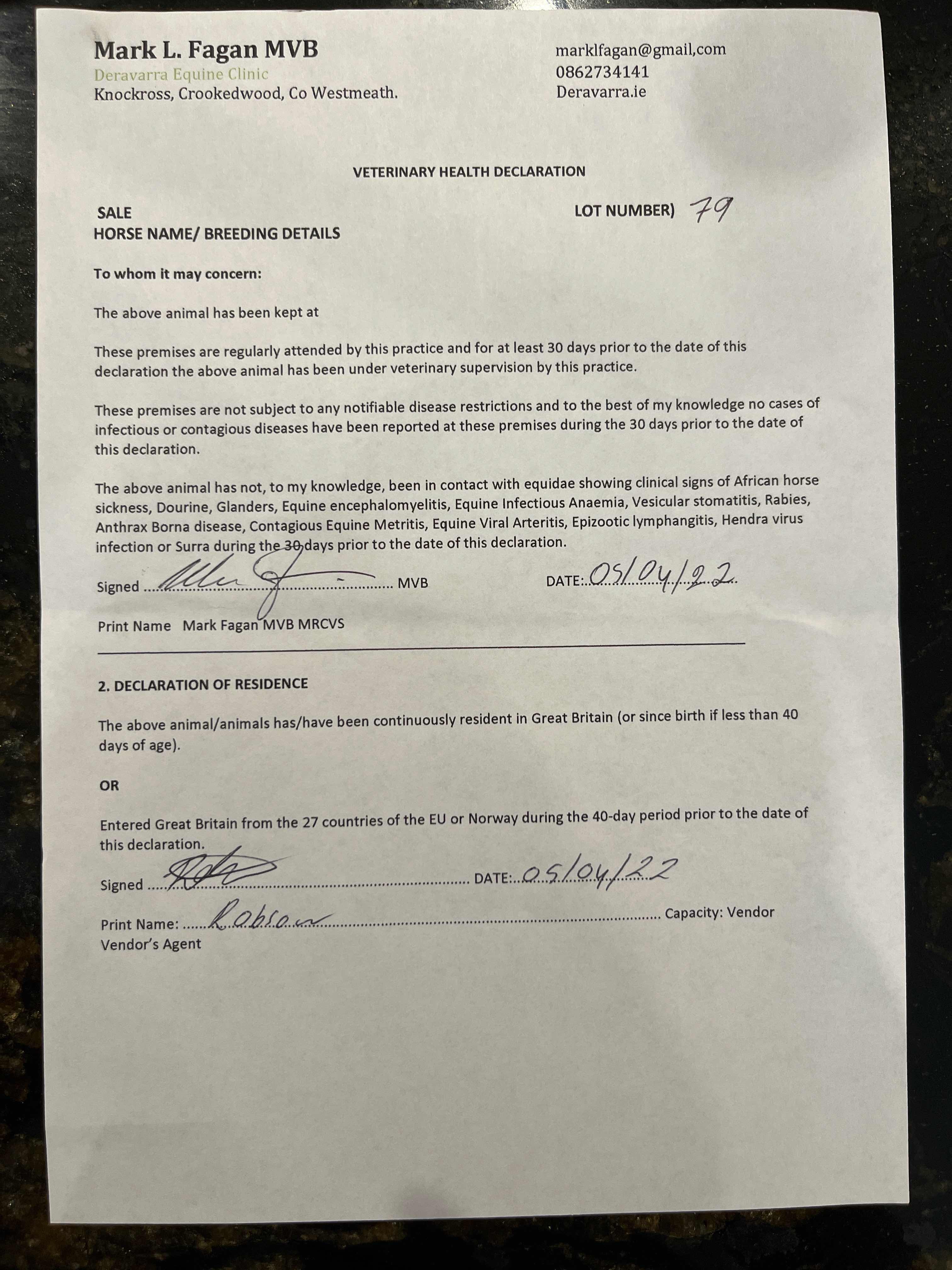 Consignor: Aguiar Bloodstock Ltd., Ireland