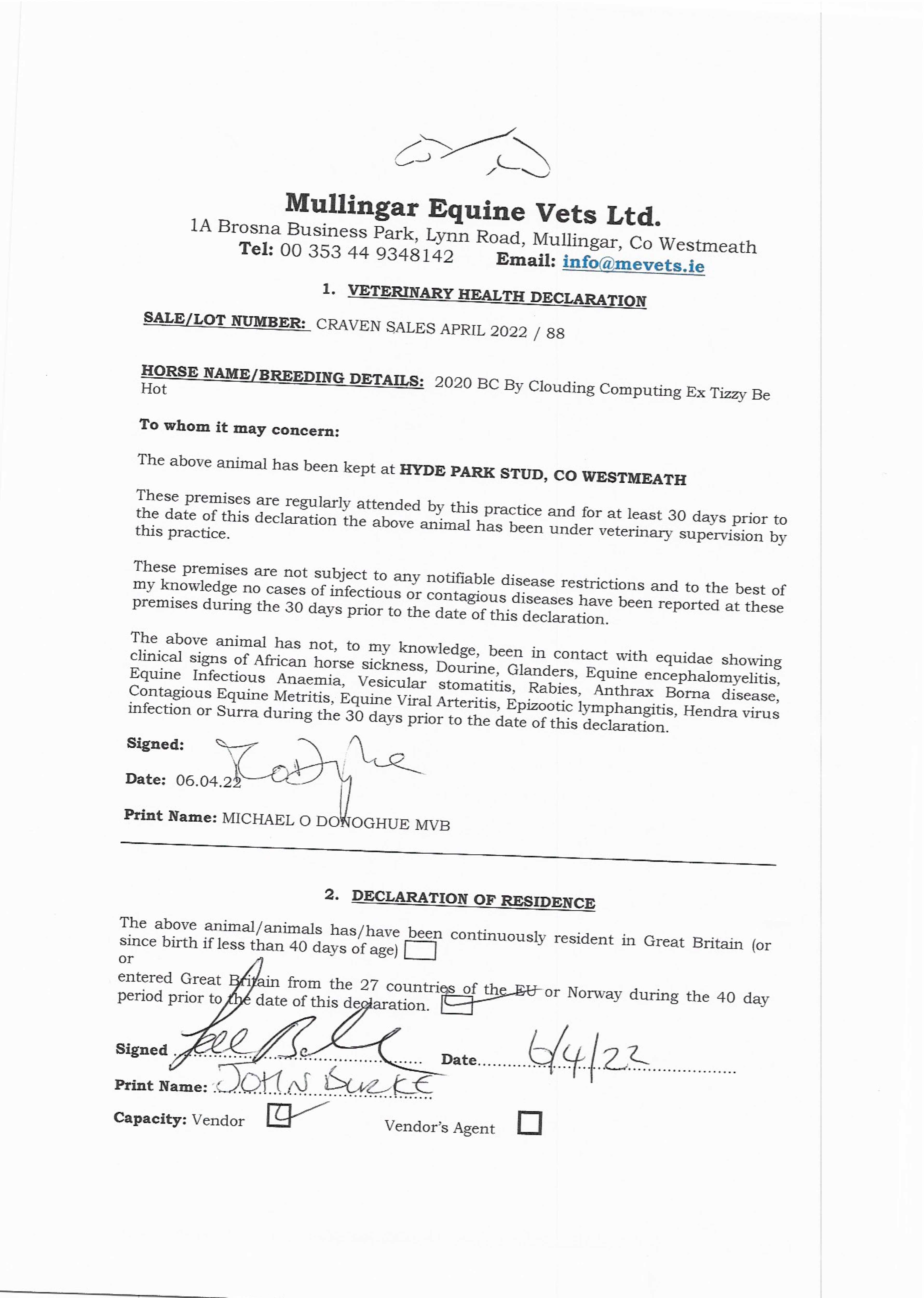 Hyde Park Stud, Ireland