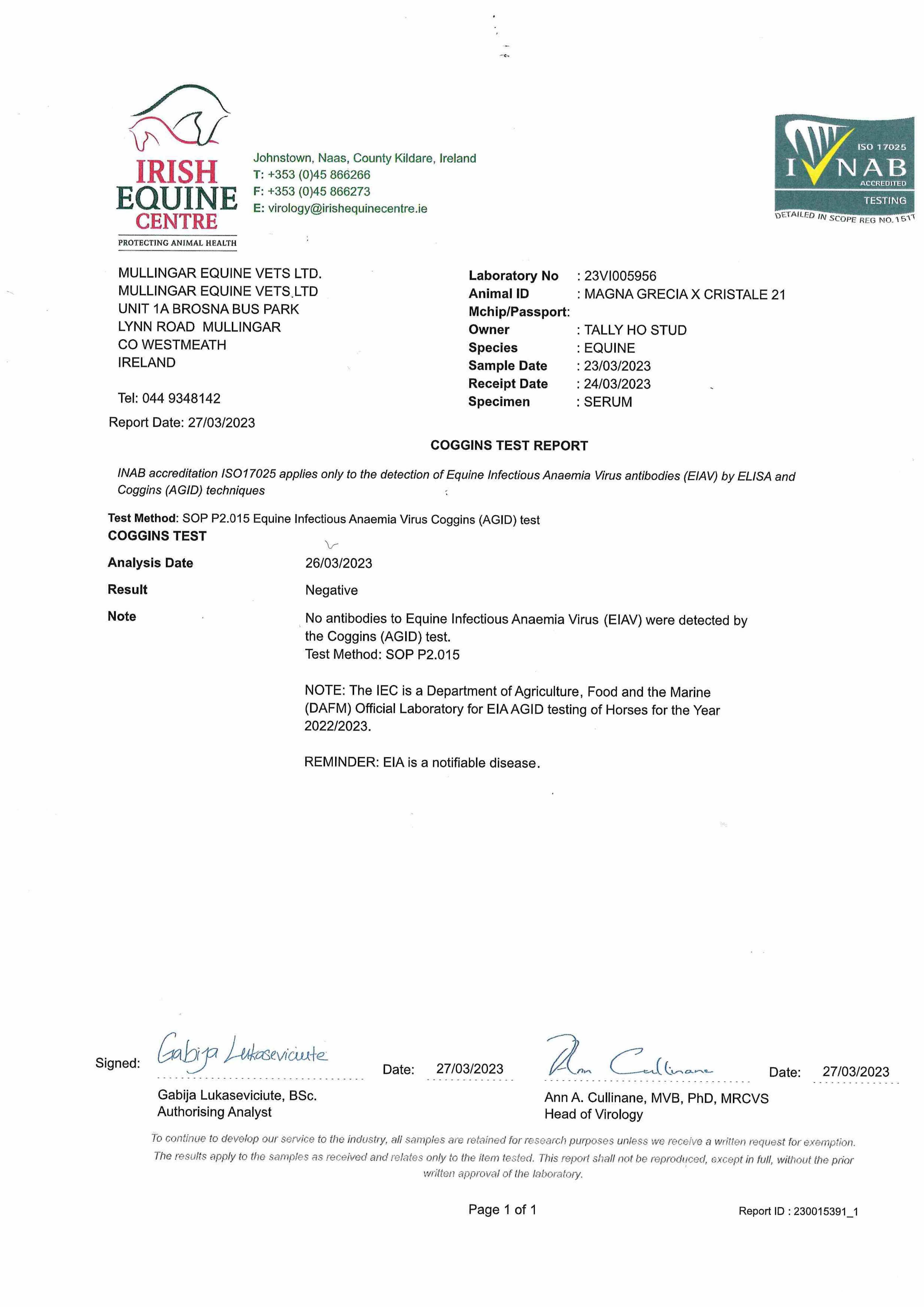 Consignor: Tally-Ho Stud, Ireland