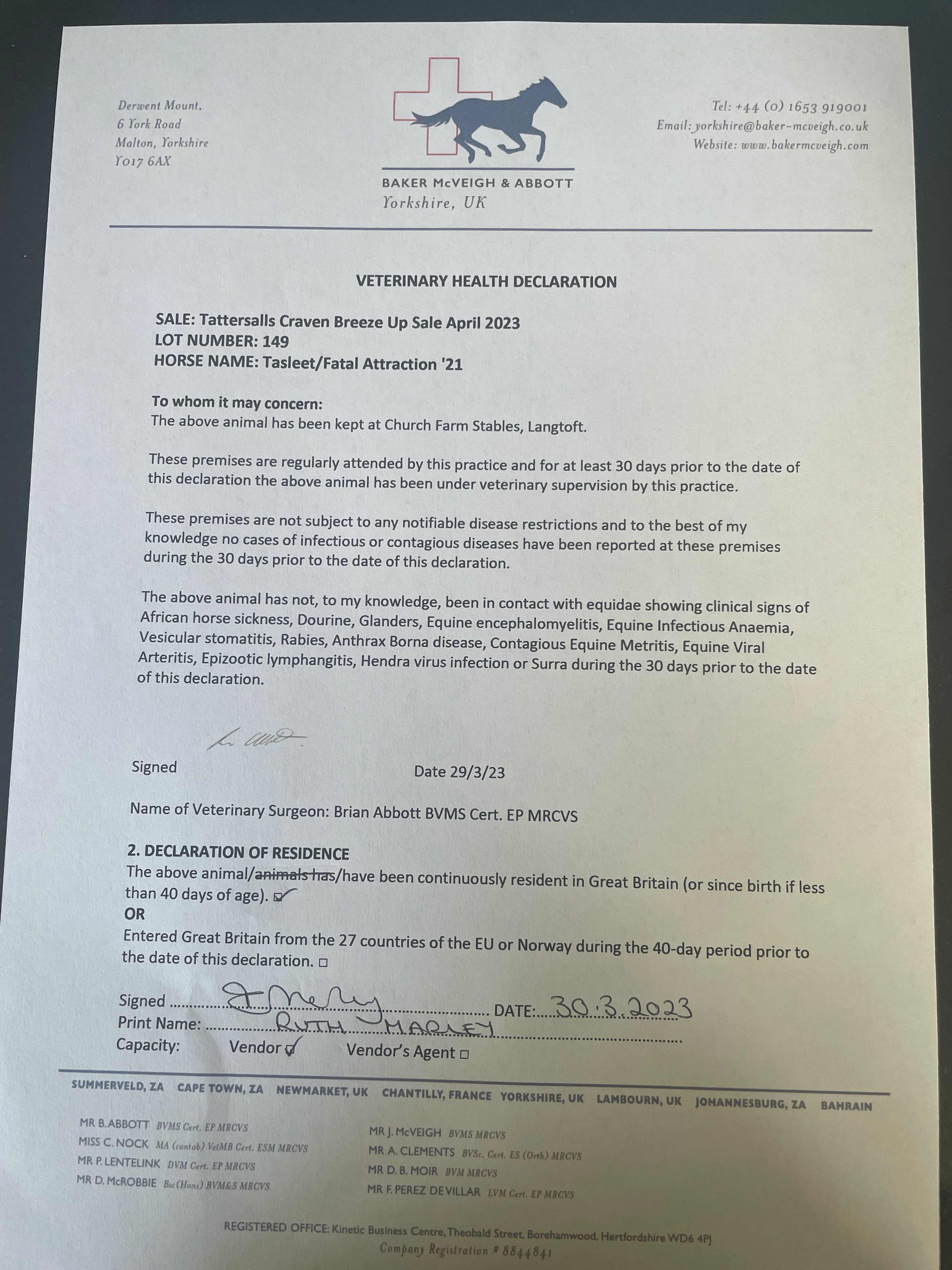 Consignor: Church Farm & Horse Park Stud