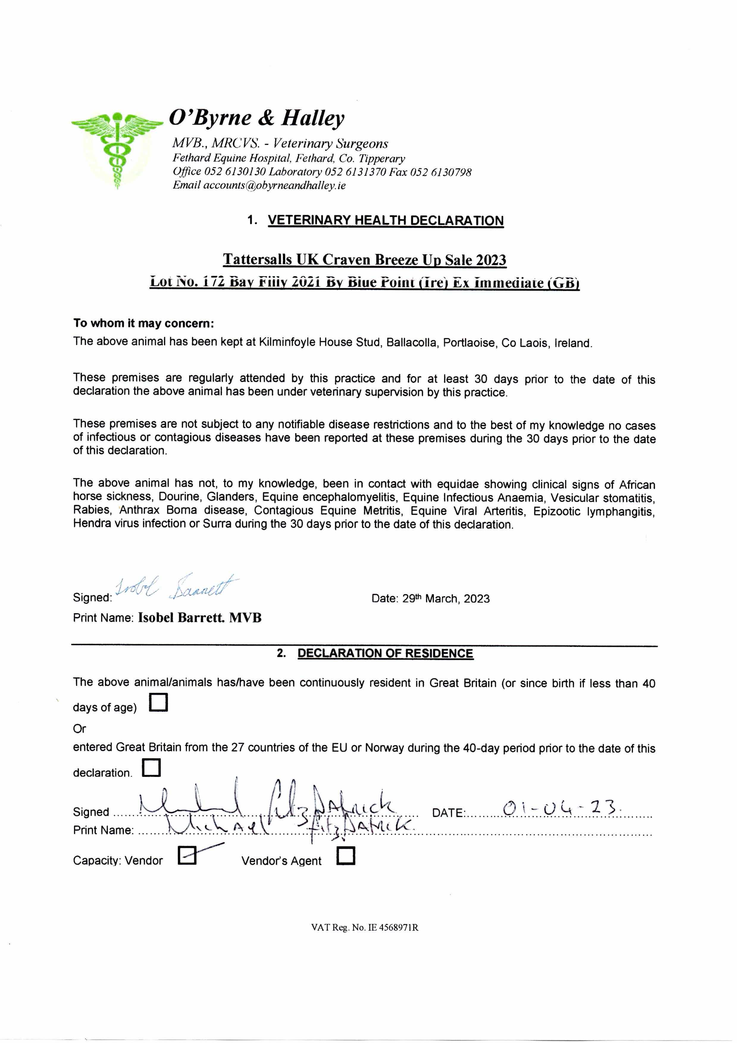 Consignor: Kilminfoyle House Stud, Ireland (Agent)