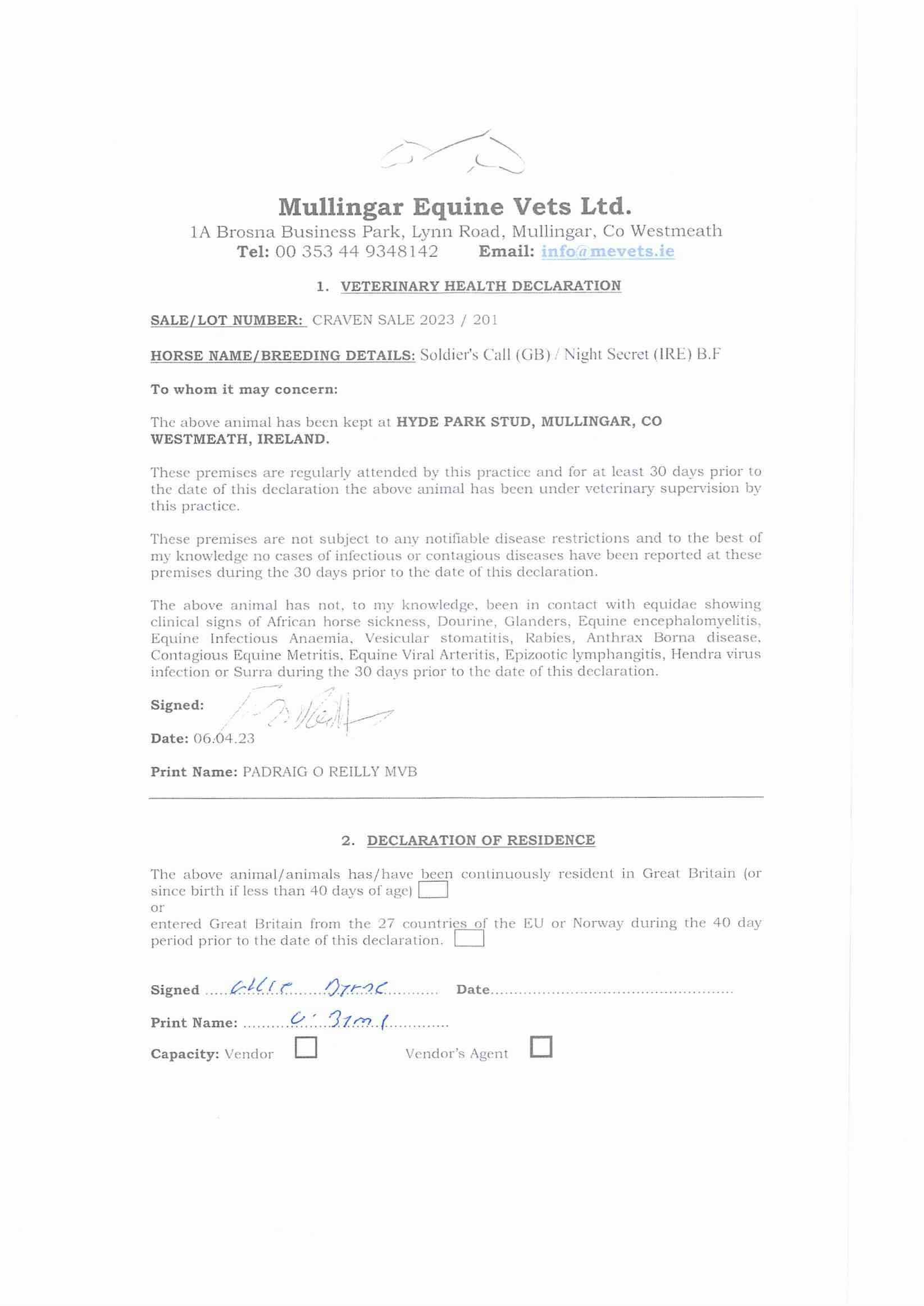 Consignor: Hyde Park Stud, Ireland