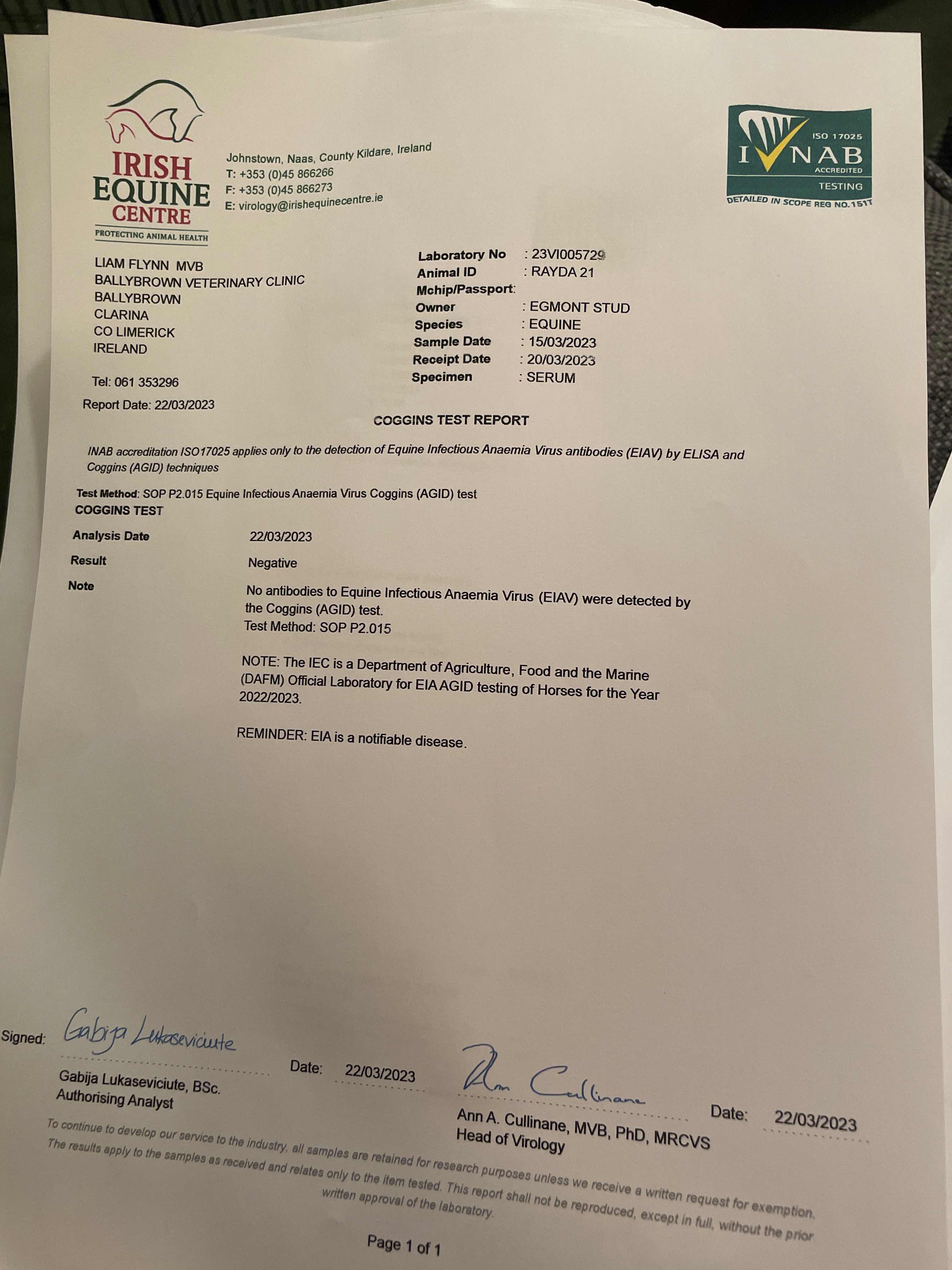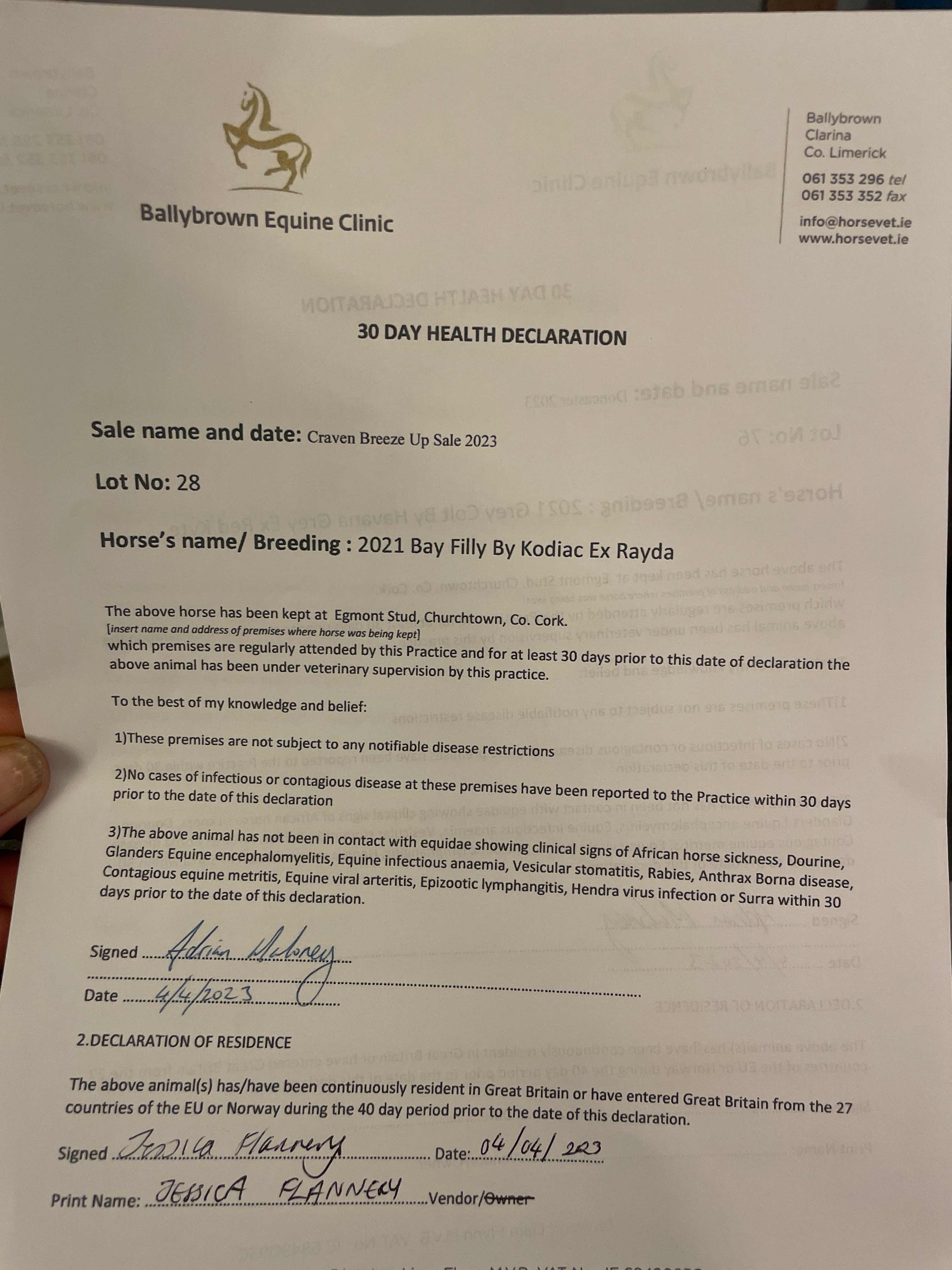Consignor: Egmont Stud, Ireland