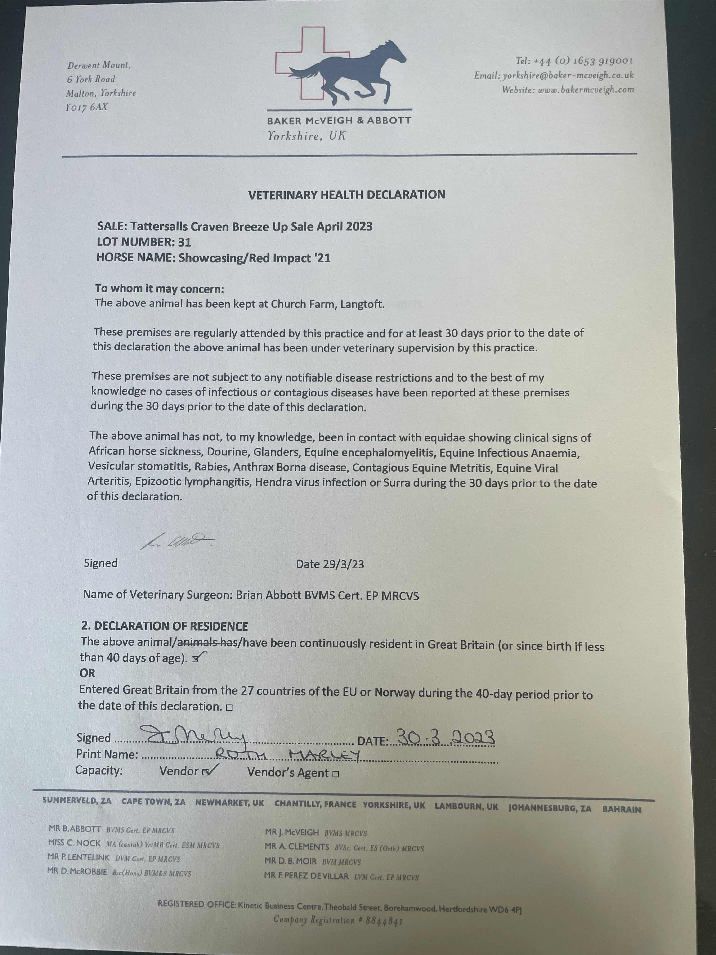 Consignor: Church Farm & Horse Park Stud