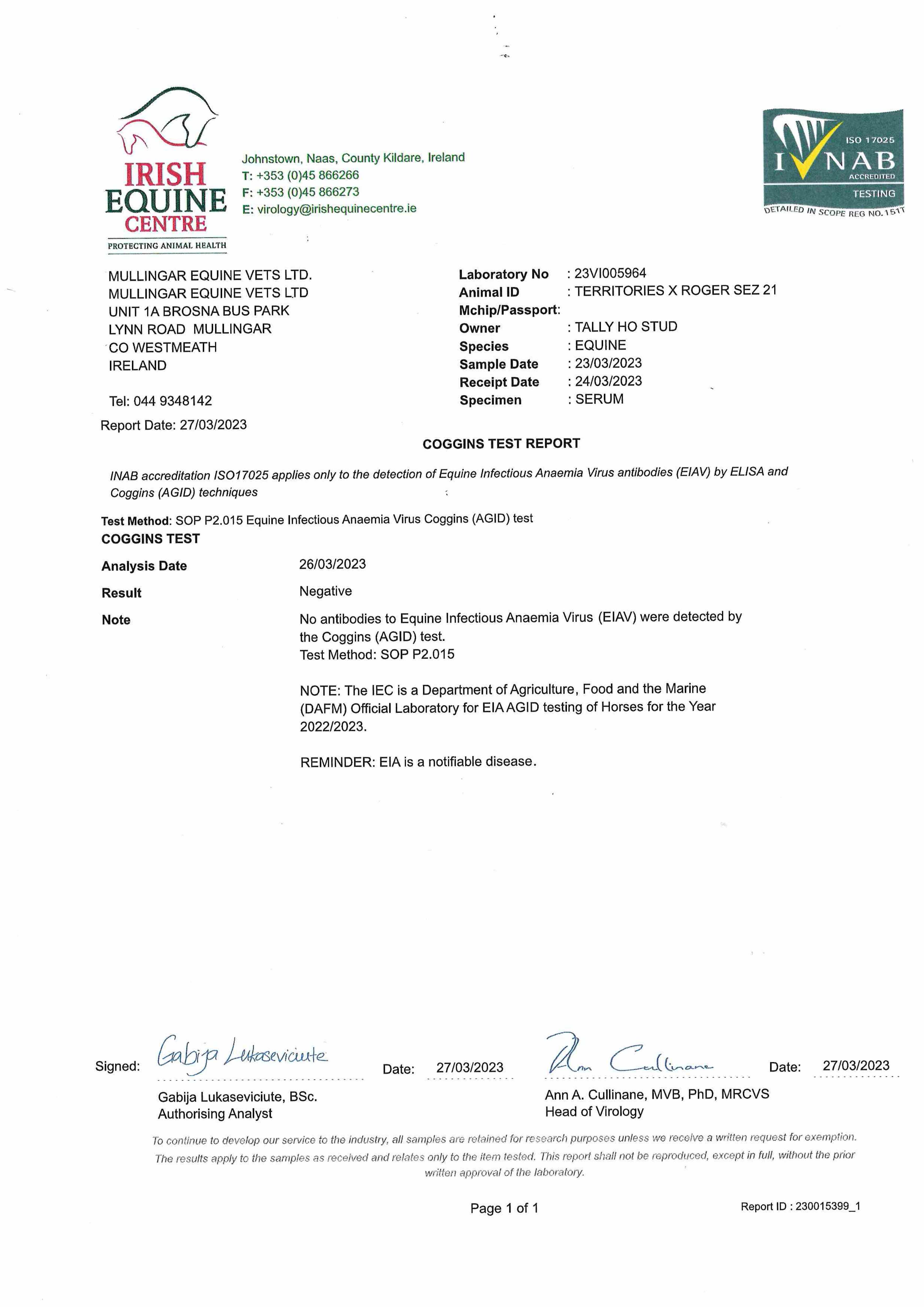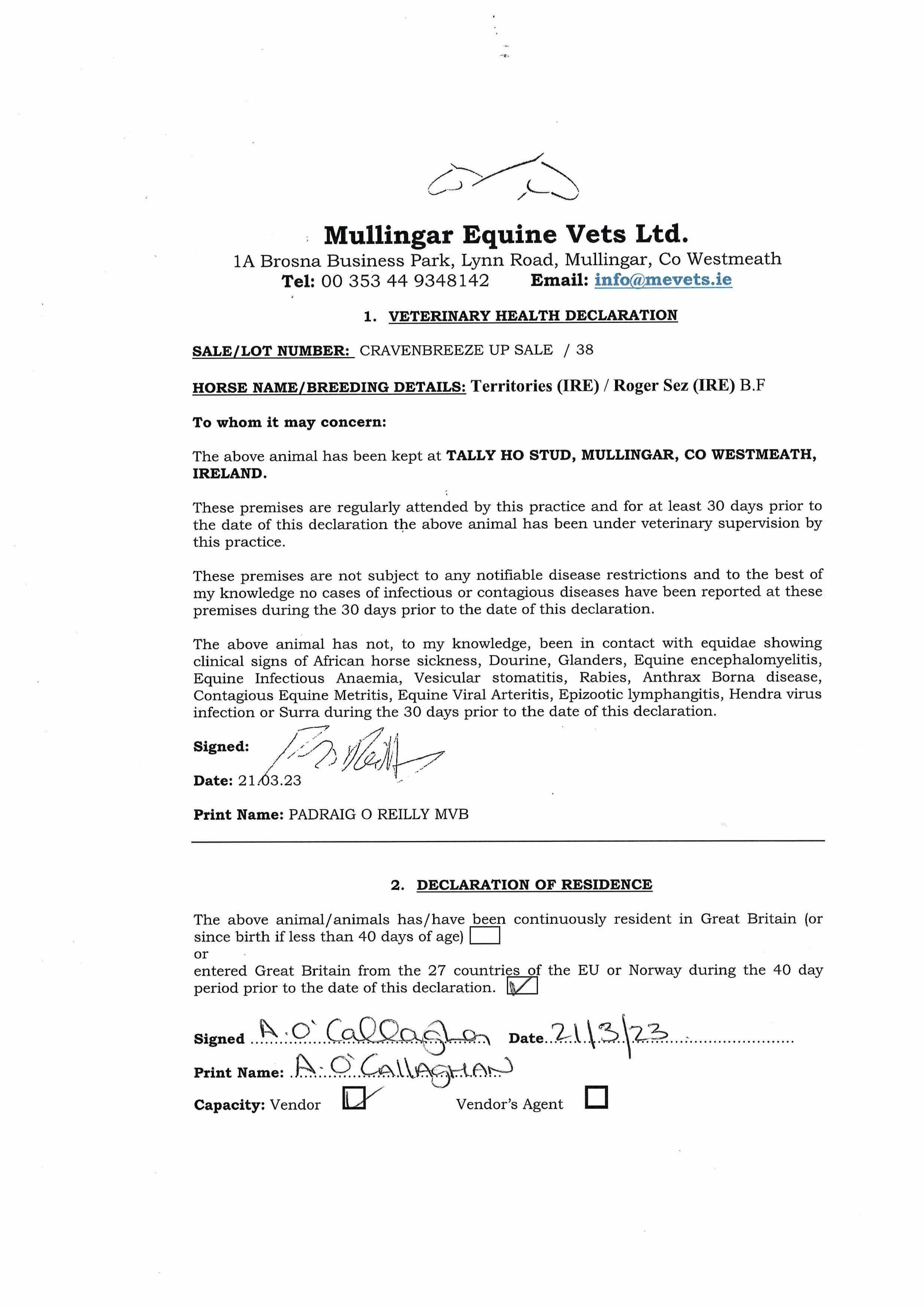 Consignor: Tally-Ho Stud, Ireland