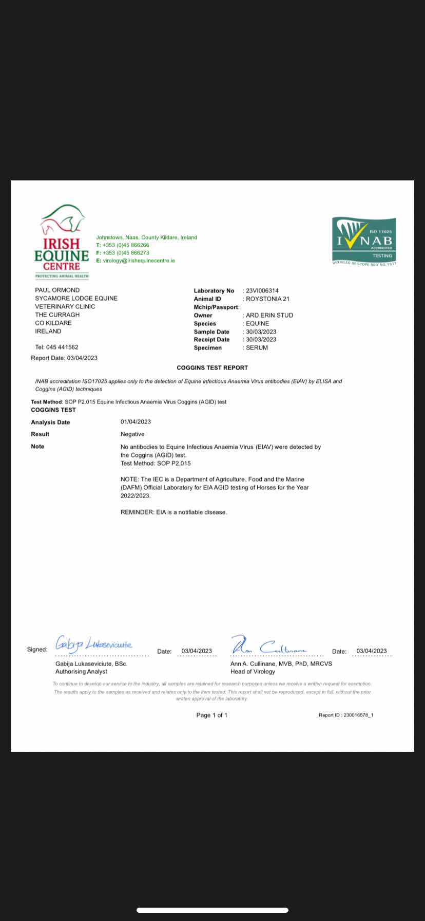 Consignor: Ard Erin Stud, Ireland