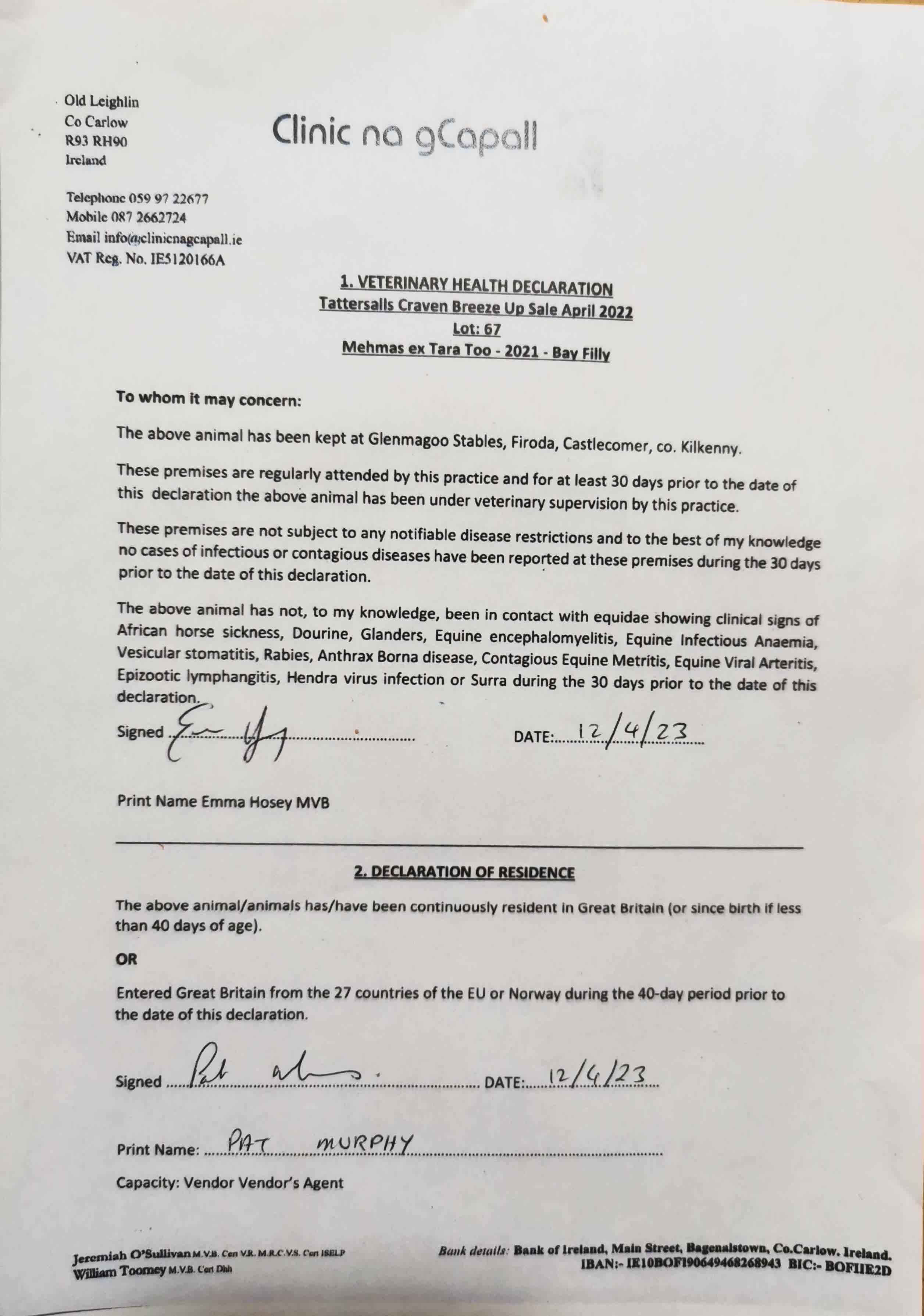 Consignor: Glenmagoo Stables, Ireland