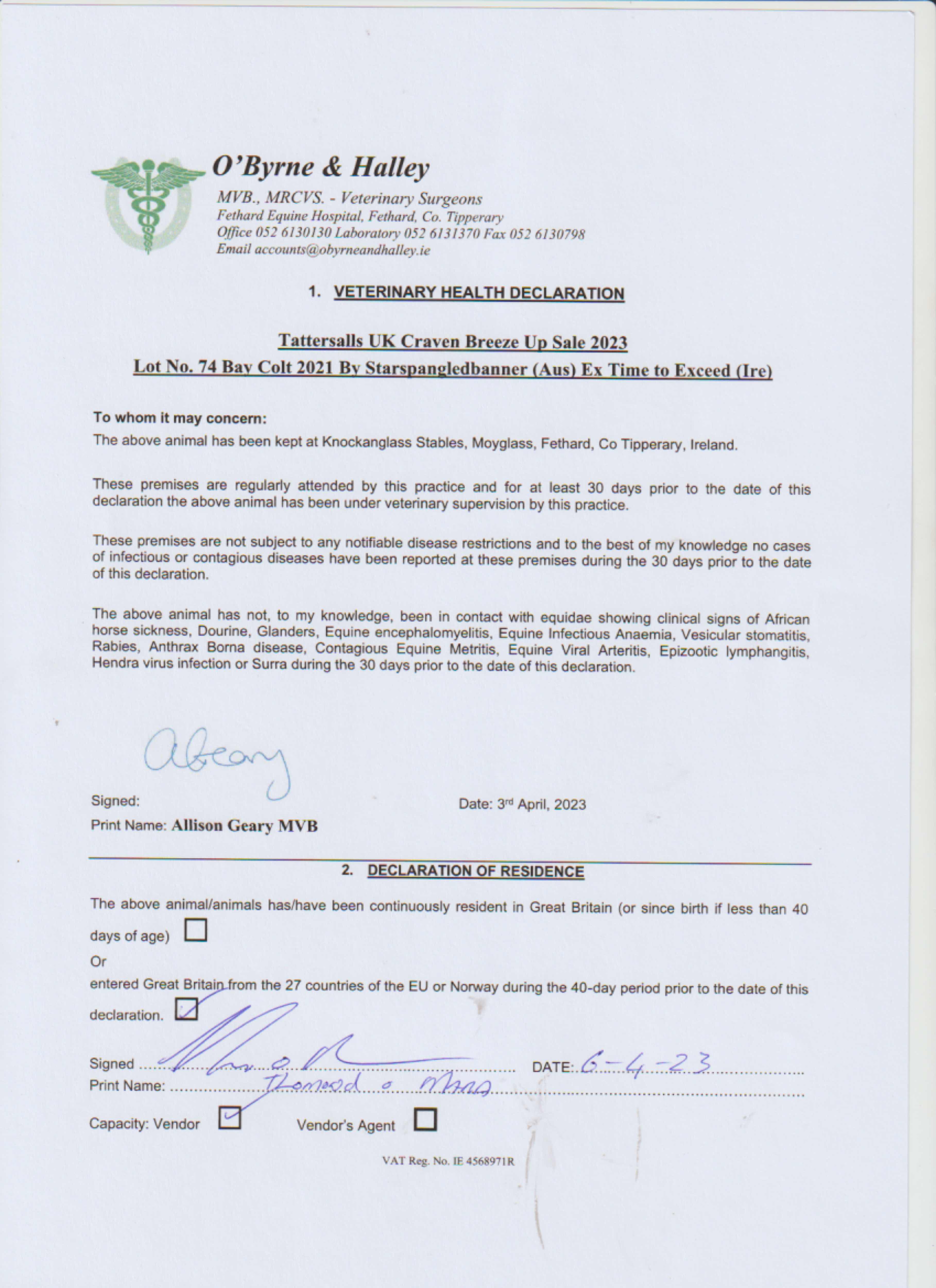 Consignor: Knockanglass Stables, Ireland