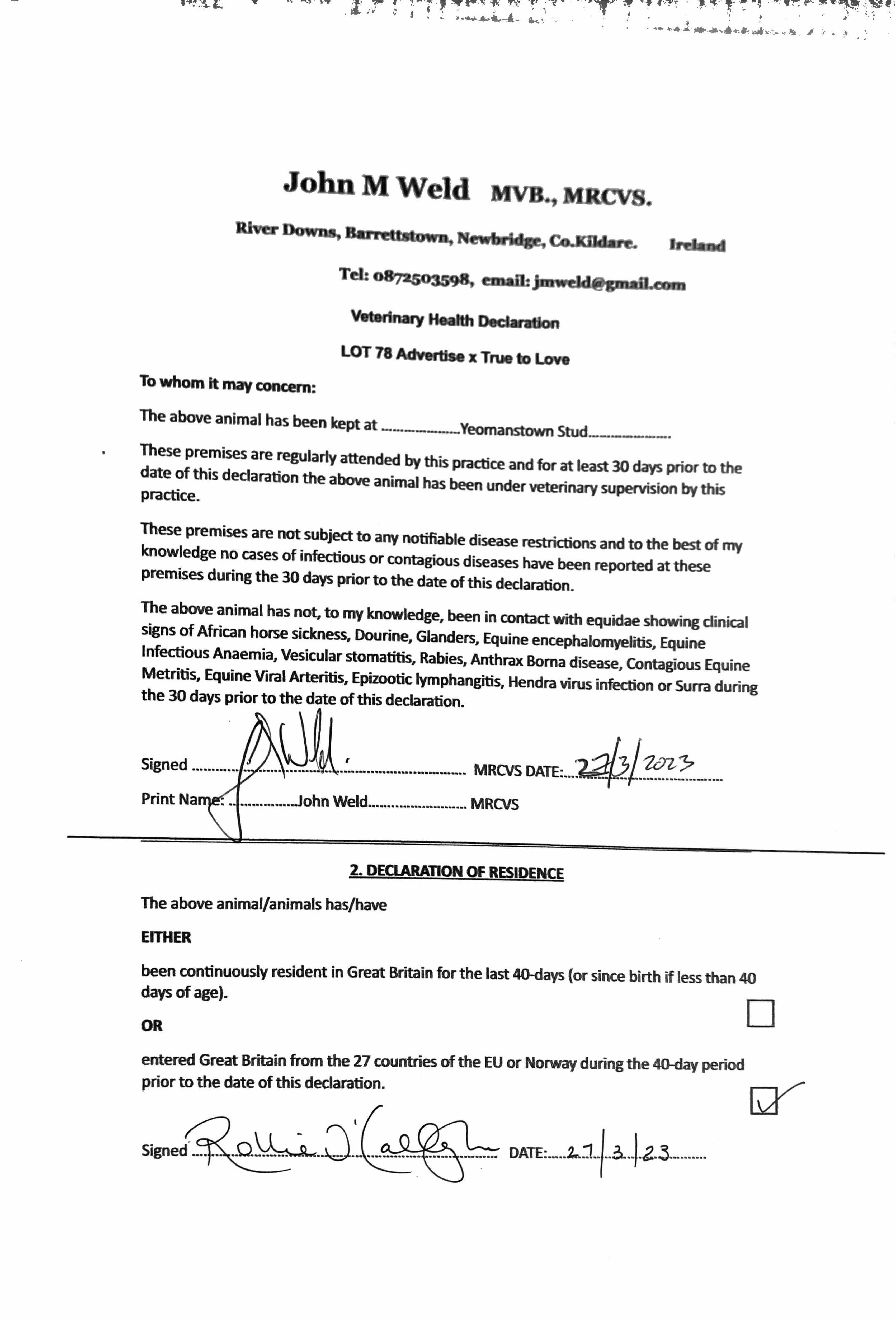 Consignor: Yeomanstown Stud, Ireland