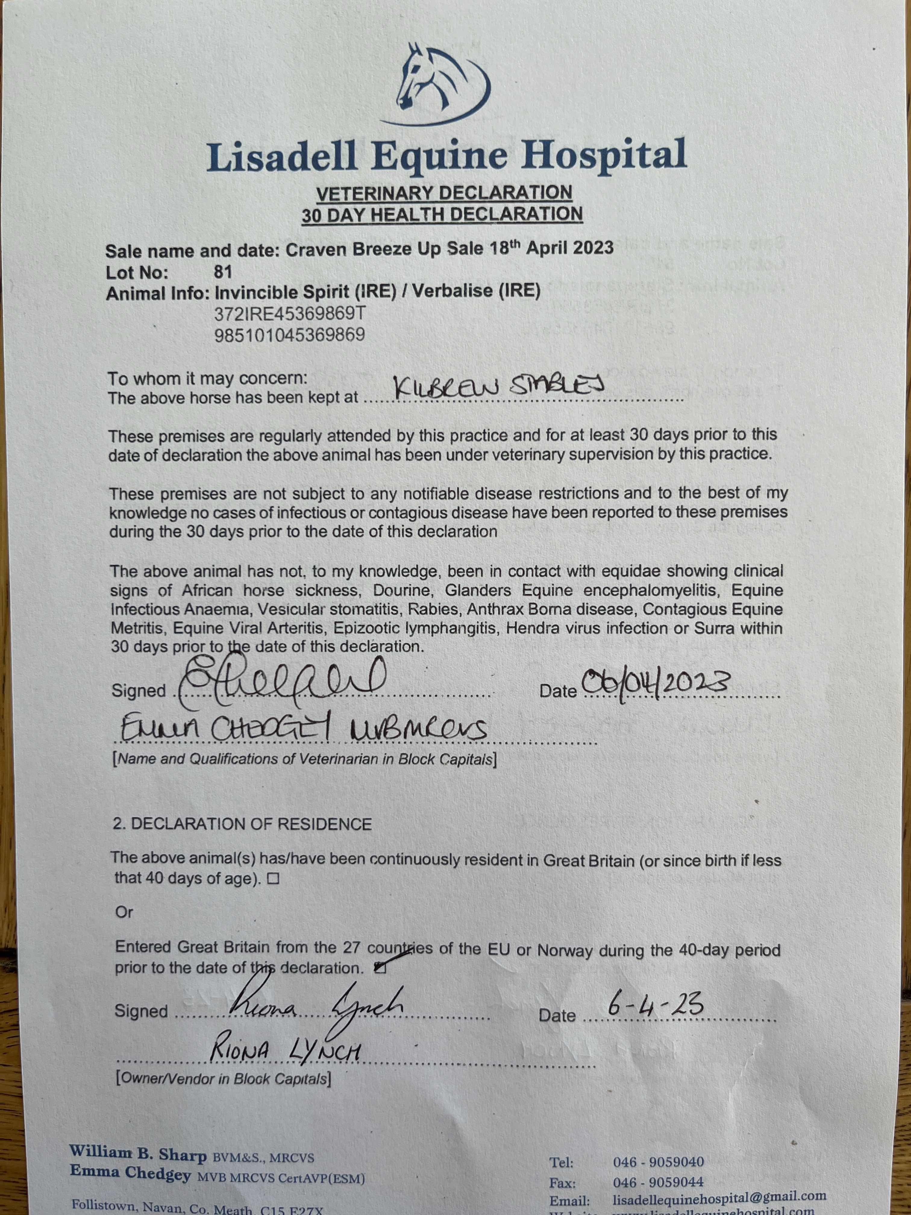 Sapphire Sale 2023 lot 205 F. by Profitable (IRE) 2023, Castledillon Stud (Agent)=>Hedge Road Bloodstock / BBB €1,400
