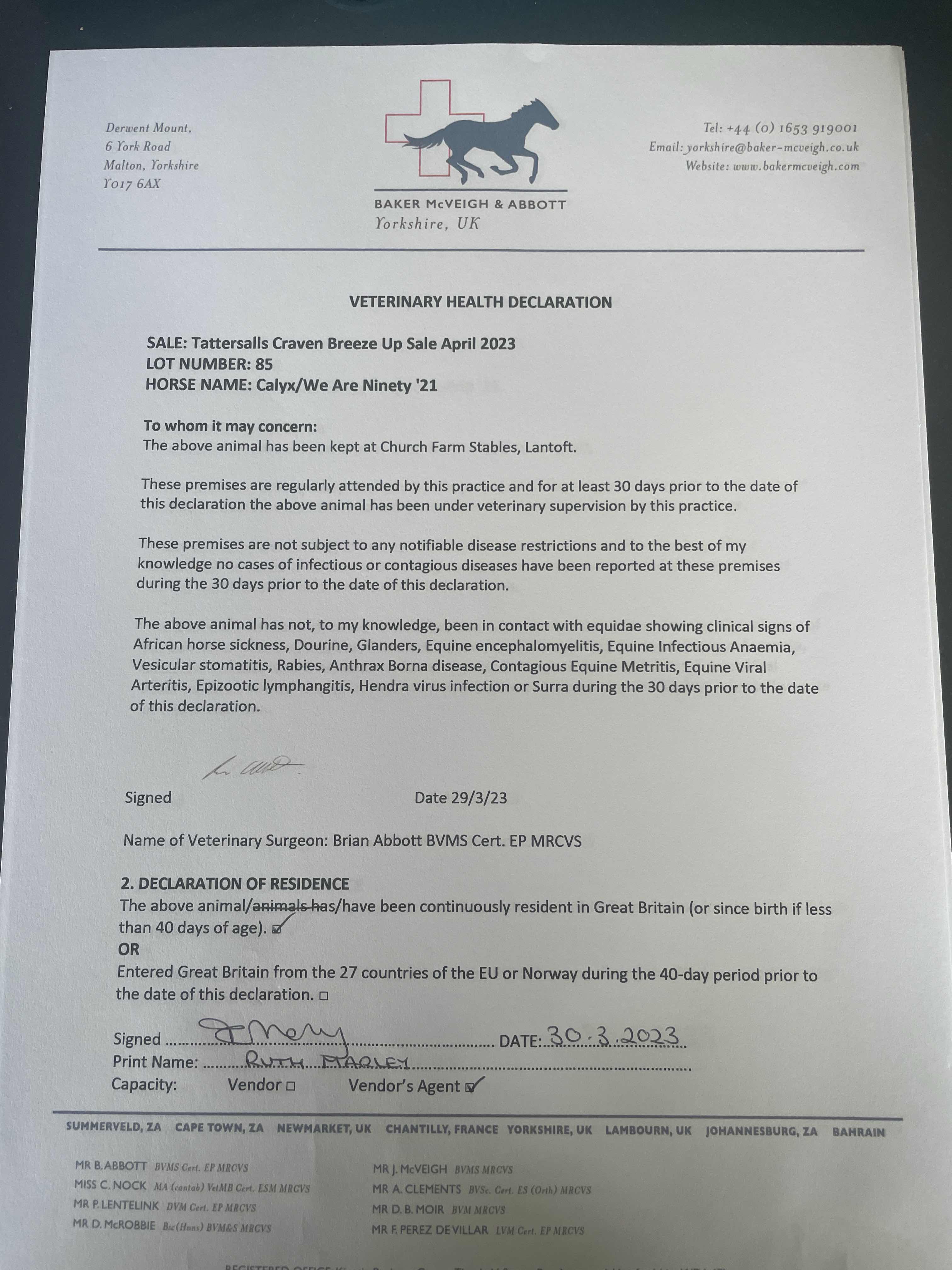 Consignor: Church Farm & Horse Park Stud