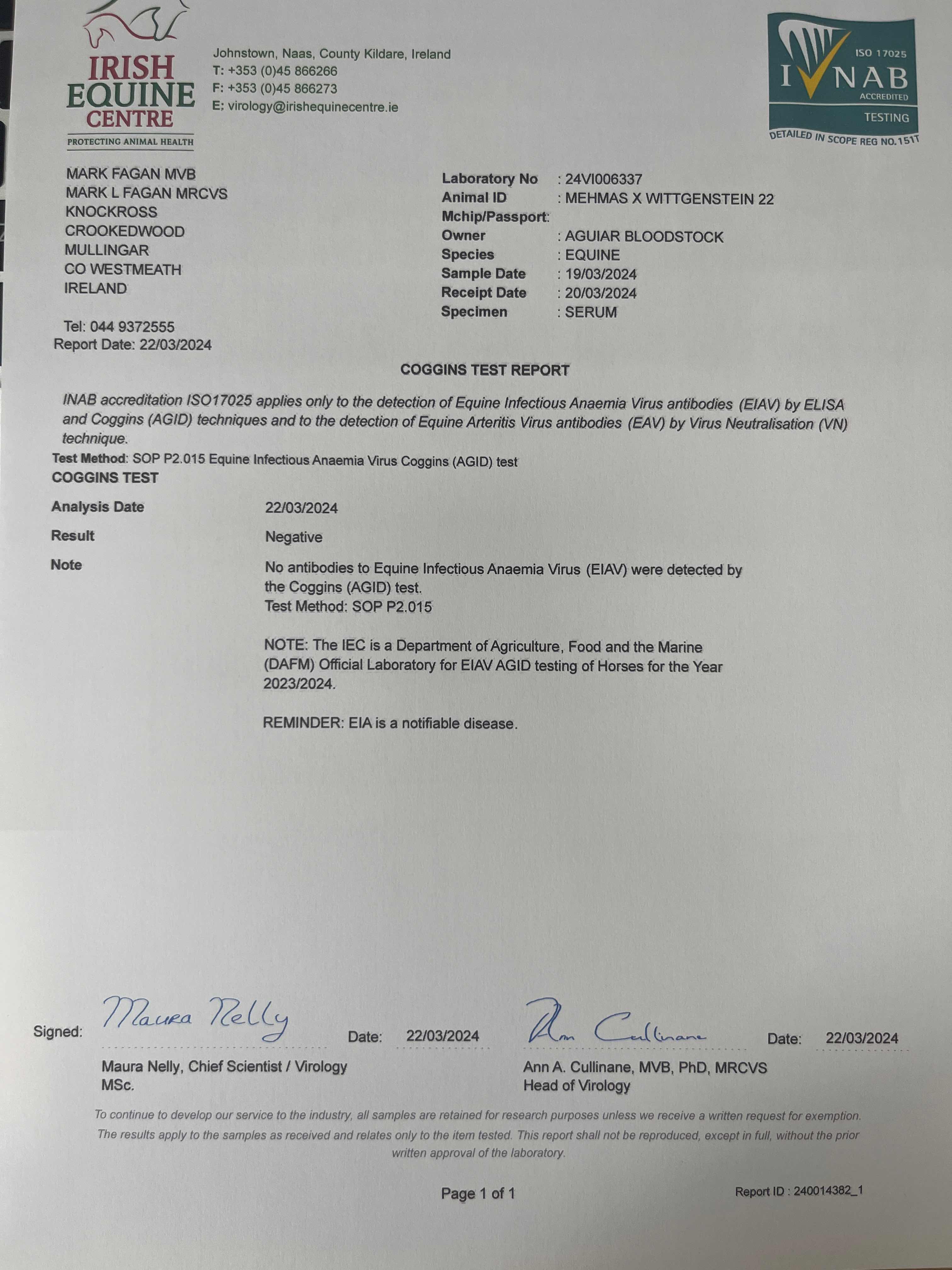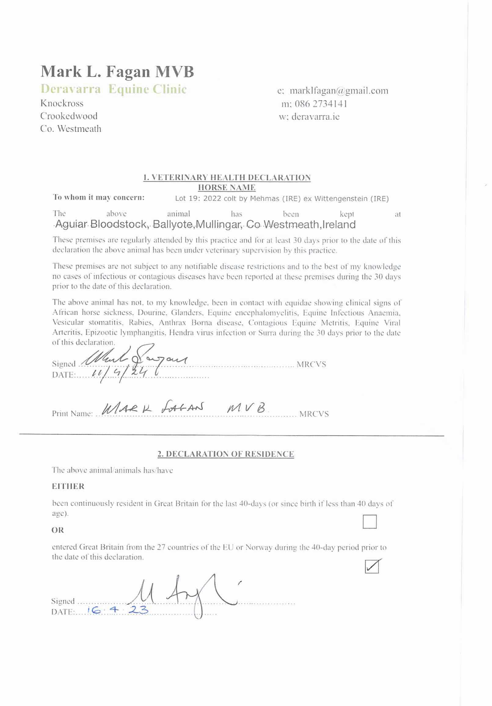 Consignor: Aguiar Bloodstock Ltd., Ireland