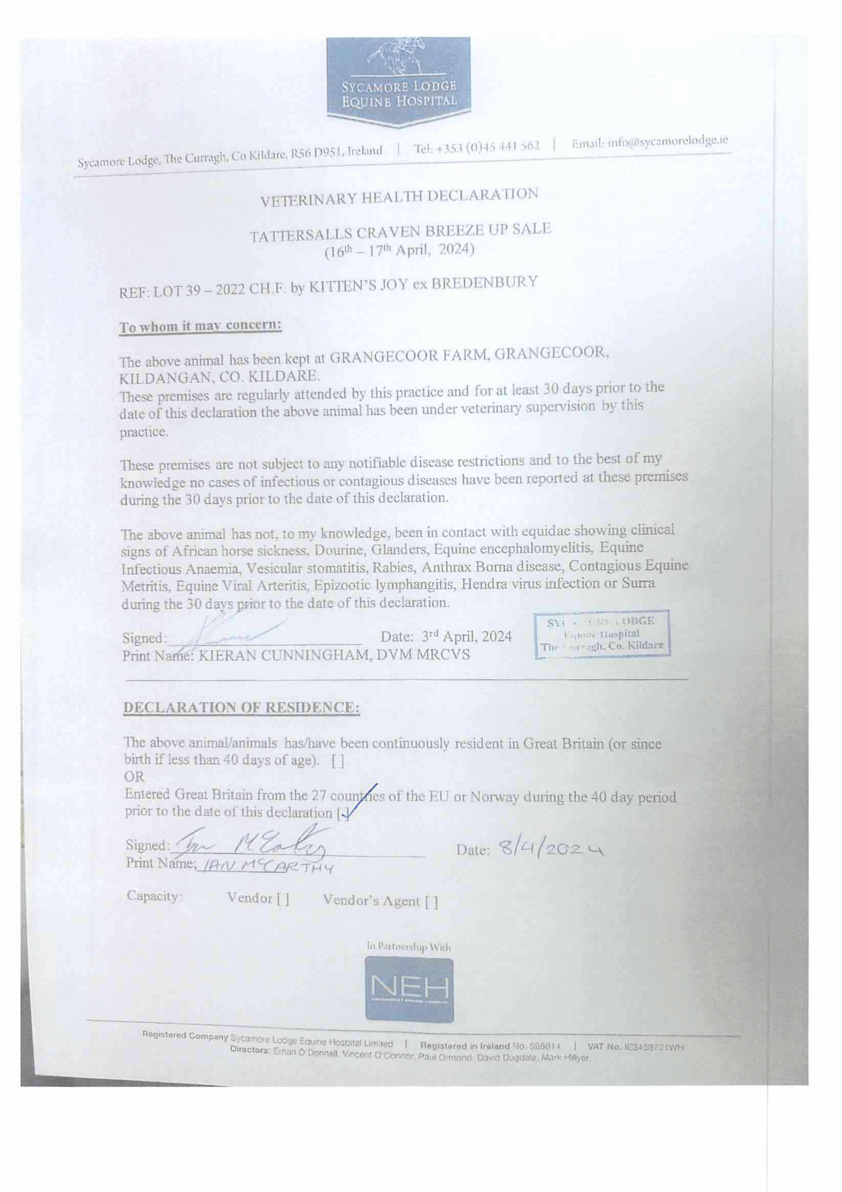 Consignor: Grangecoor Farm, Ireland