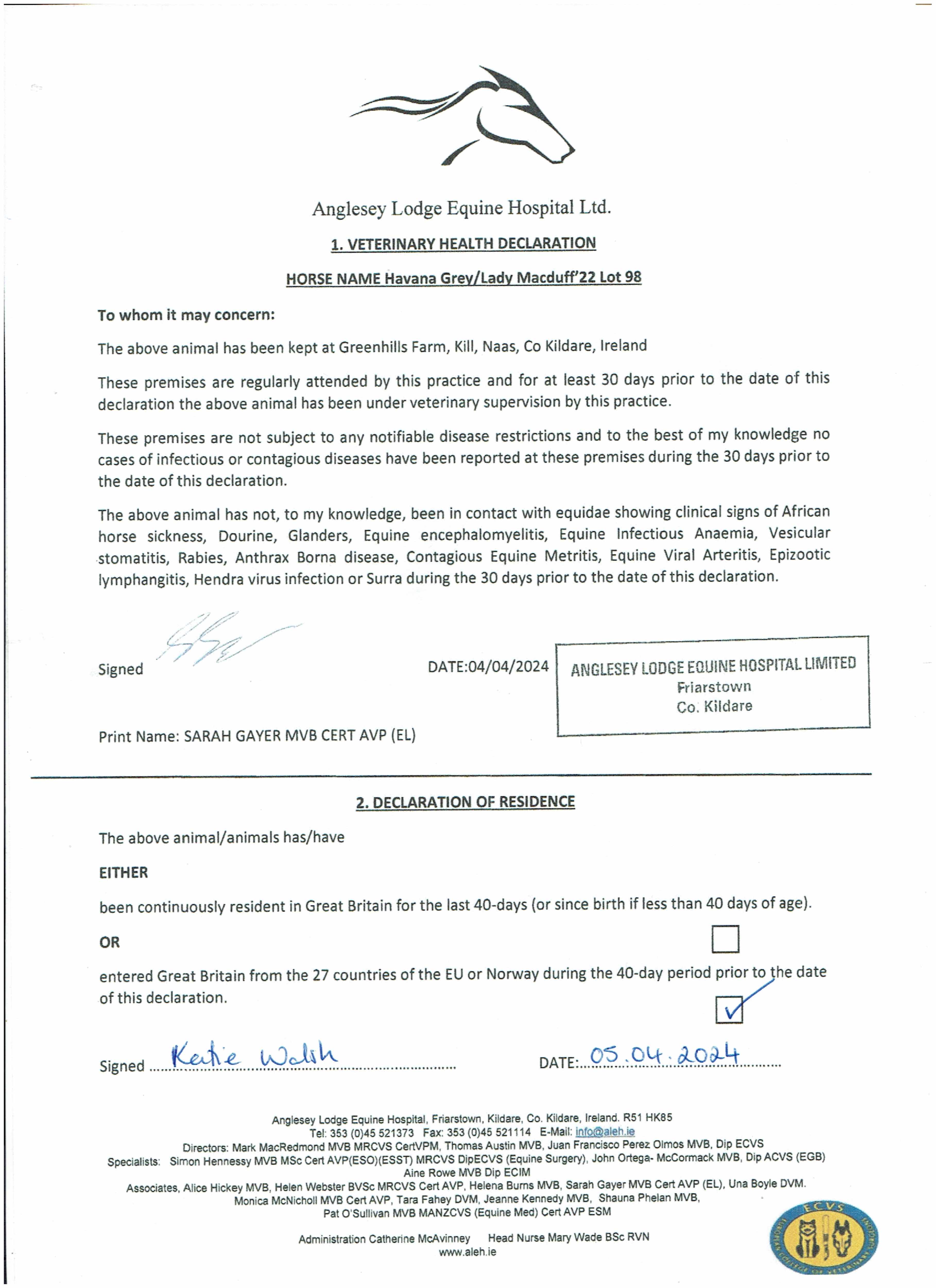 Consignor: Greenhills Farm, Ireland