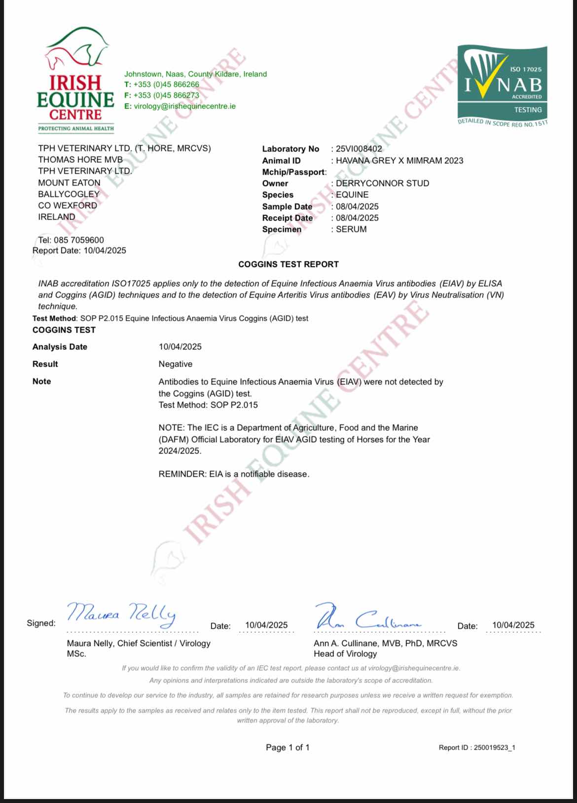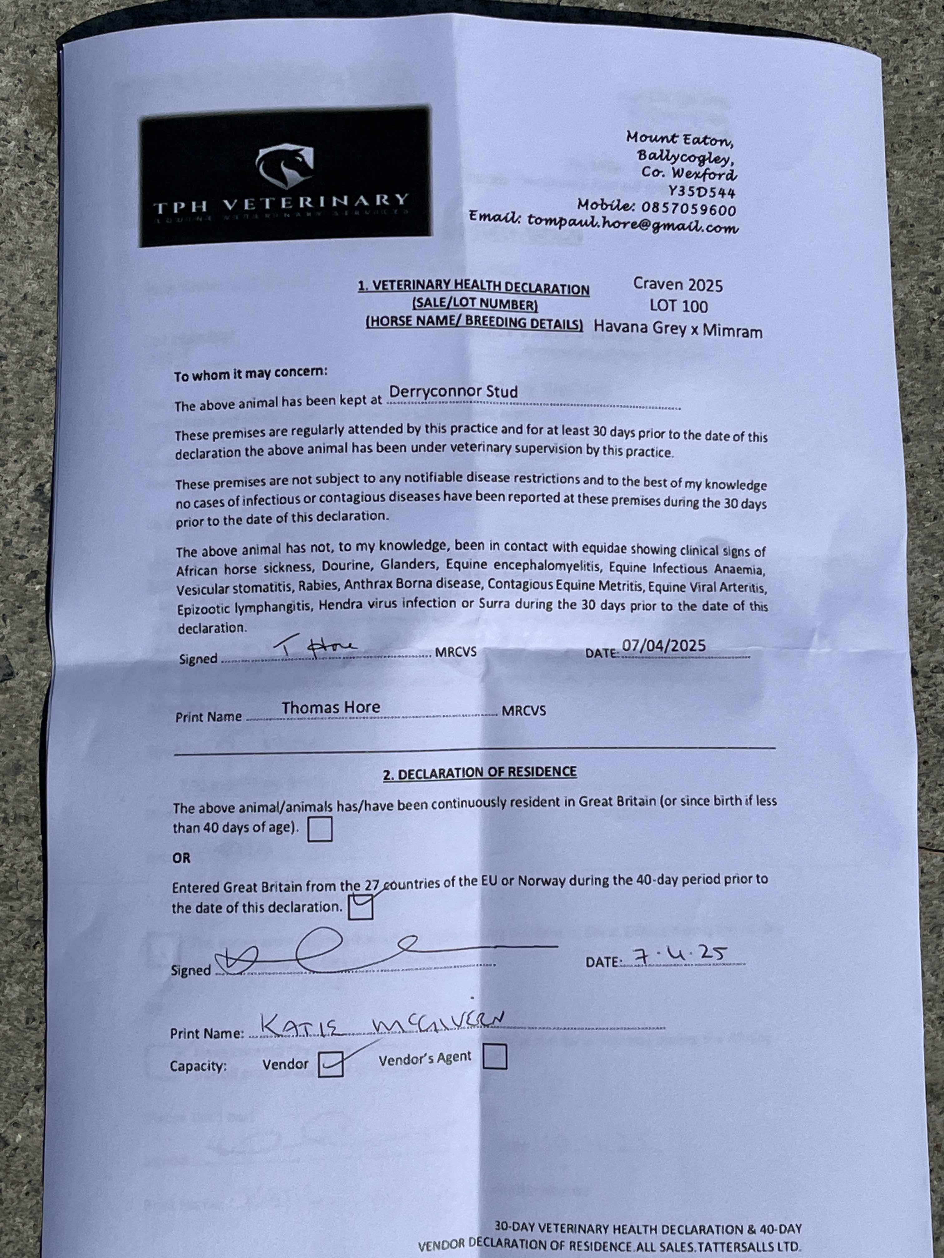Consignor: Derryconnor Stud, Ireland